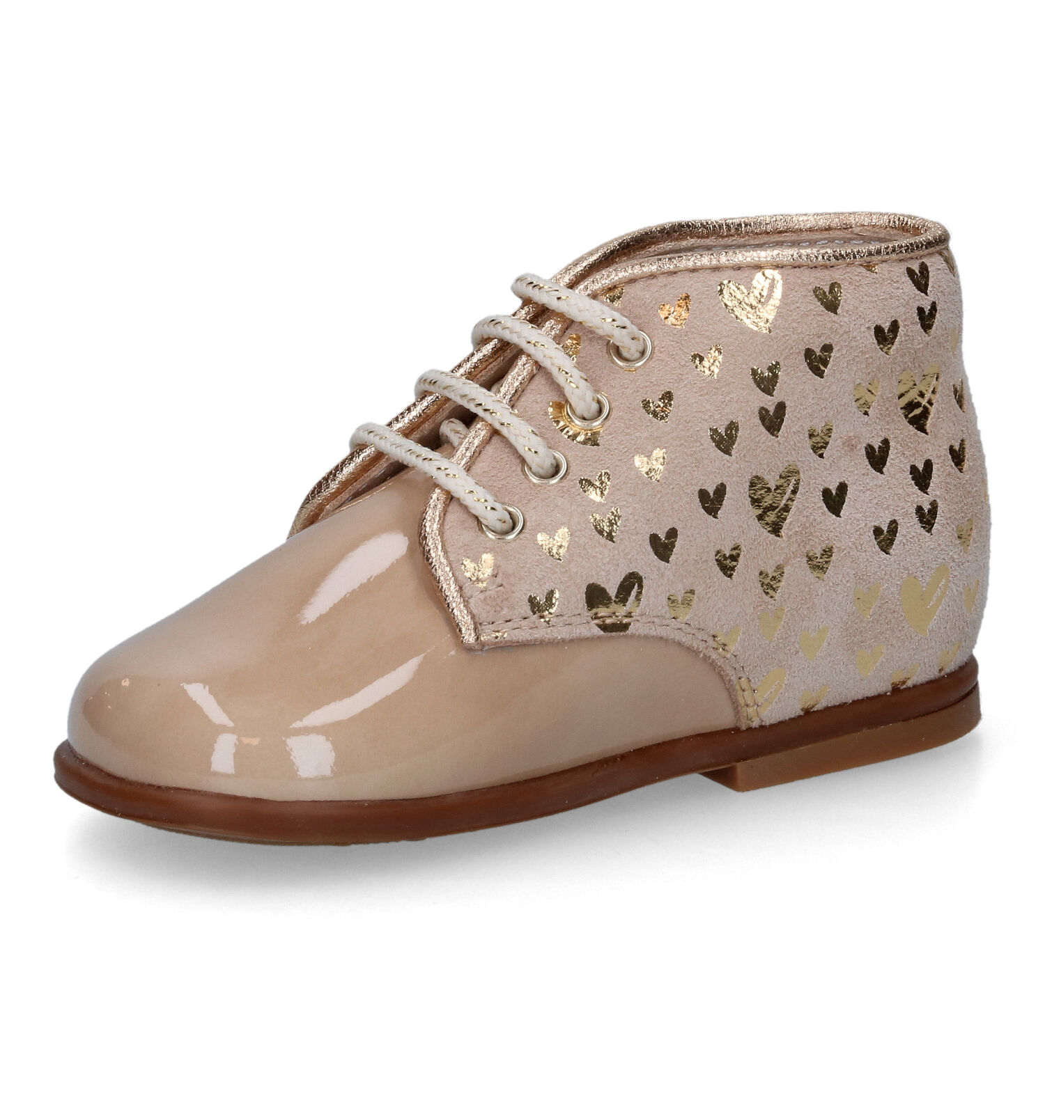 Cette chaussure pour bébé Beberlis est fabriquée en nubuck, verni et doublée cuir à l’intérieur.