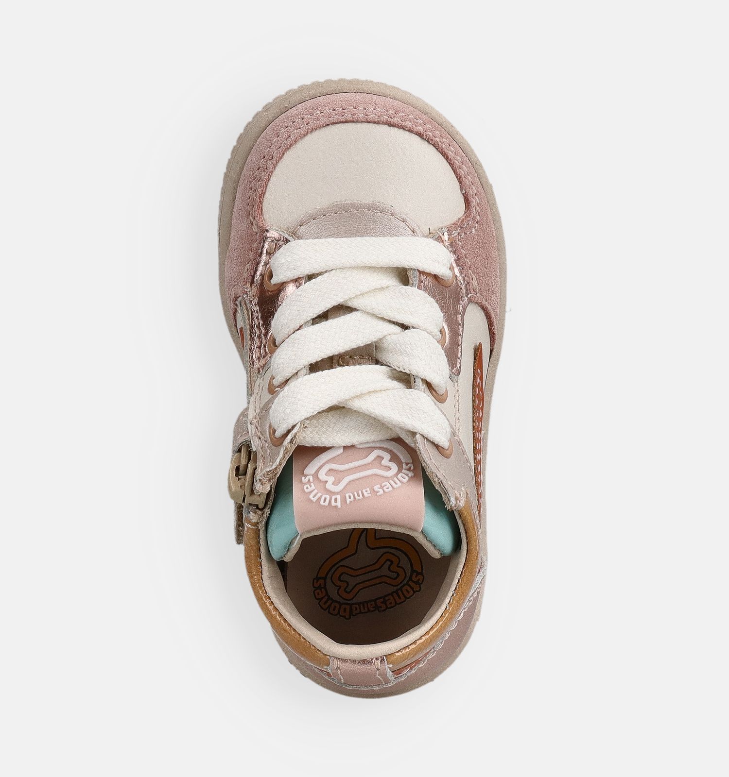 La marque belge de chaussures pour enfants STONES and BONES fabrique les plus belles chaussures pour filles depuis près de soixante-dix ans. Avec autant d'années d'expérience, STONES and BONES sait aussi parfaitement ce dont les pieds des enfants en pleine croissance ont besoin. D'ailleurs, ces chaussures premiers pas en blanc le prouvent ! Ces chaussures premiers pas pour filles ont un talon légèrement renforcé pour un soutien supplémentaire, une semelle semi-souple pour un meilleur maintien du pied, une fermeture facile (fermeture éclair & lacets) et peuvent supporter des chocs. Ces chaussures premiers pas donneront à votre petite fille un confort invisible pour marcher, sauter et jouer, sans aucun doute !