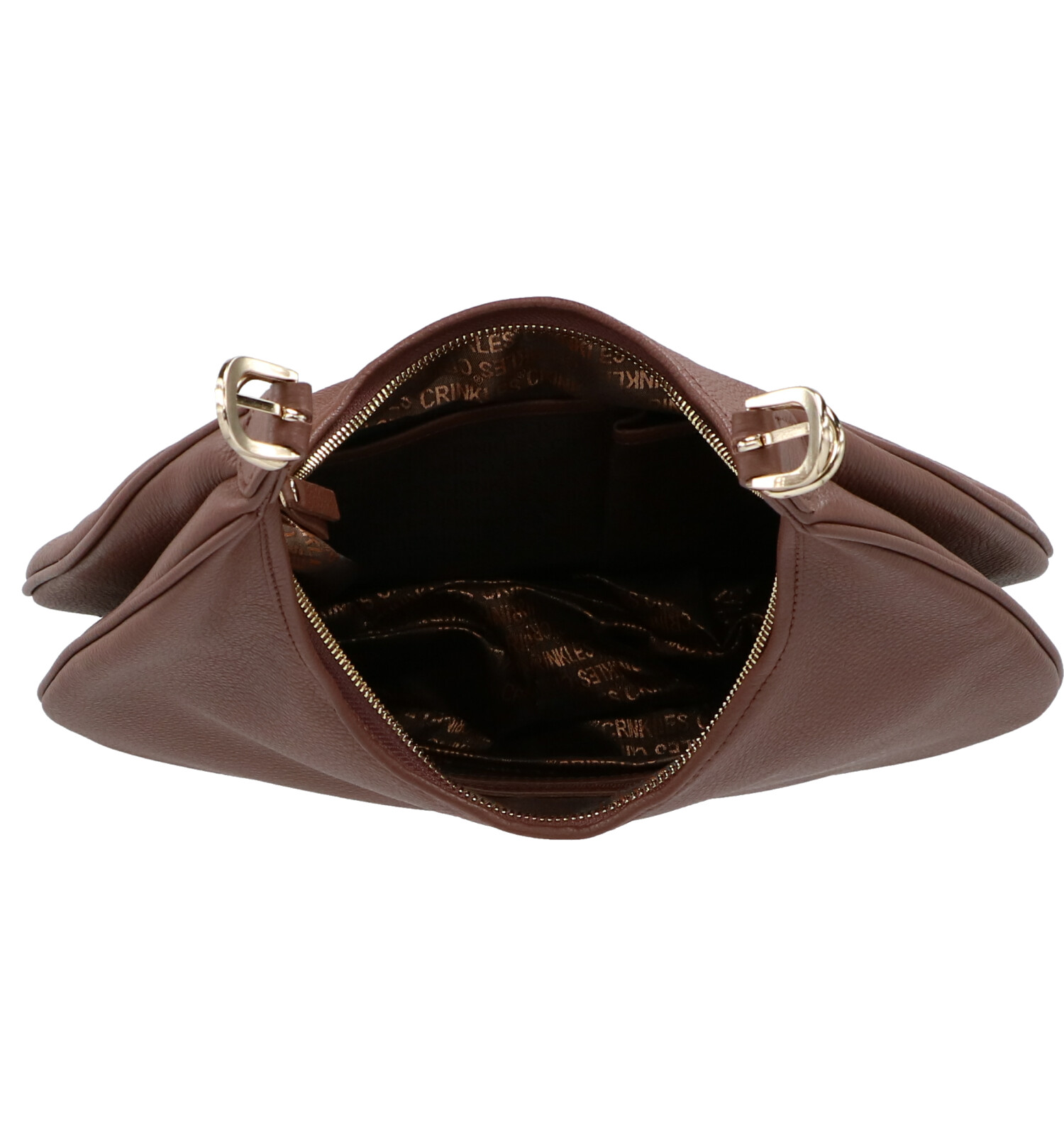 Ce superbe sac à bandoulière en cognac signé Crinkles est un accessoire indispensable.