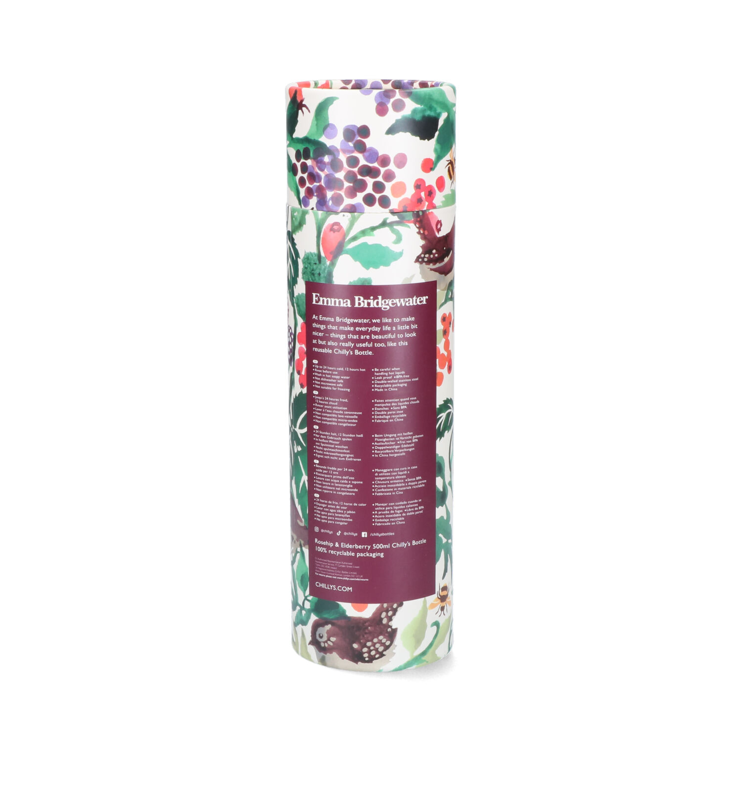 Lors de la création de la marque en 2010, les deux fondateurs de Chilly's s'étaient fixé une seule mission : faire renoncer à l'utilisation des bouteilles en plastique et remettre les contenants réutilisables au goût du jour. Les gourdes Chilly's allient à la perfection qualité supérieure et design élégant. Ainsi, leur revêtement à double paroi en acier inoxydable vous permet de conserver vos boissons fraîches pendant 24 heures et vos boissons chaudes, pendant 12 heures. Cerise sur le gâteau : des imprimés tendance, des couleurs vives et des formats diversifiés. Renoncez au plastique et adoptez les contenants réutilisables branchés !