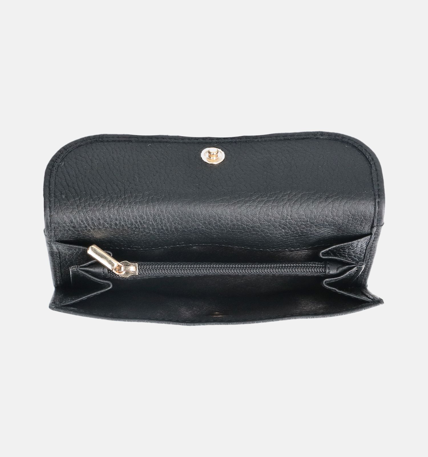 Pour éviter que votre argent et vos cartes ne se baladent dans la poche de votre veste ou dans votre sac, il vous faut un bon portefeuille. Ce portefeuille pour femmes en noir de la marque Crinkles est une excellente option ! Ce modèle est sûr, fonctionnel et chic.