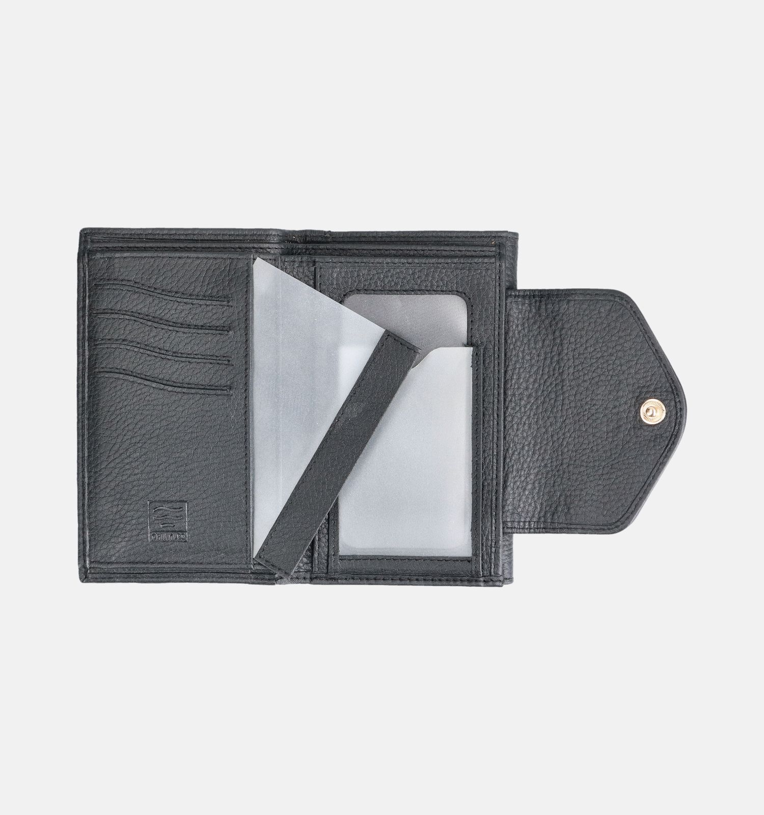 La fermeture à pression de ce portefeuille à rabat est très solide. Cela garantit que ce Crinkles en noir ne s'ouvre pas d'un seul coup. Cela garantit que ce Crinkles en noir ne s'ouvre pas tout seul. Ce porte-monnaie en noir est le modèle idéal pour les femmes qui trouvent important d'être à la fois à la mode et organisées ! Ce porte-monnaie à rabat de Crinkles est fabriqué en cuir.