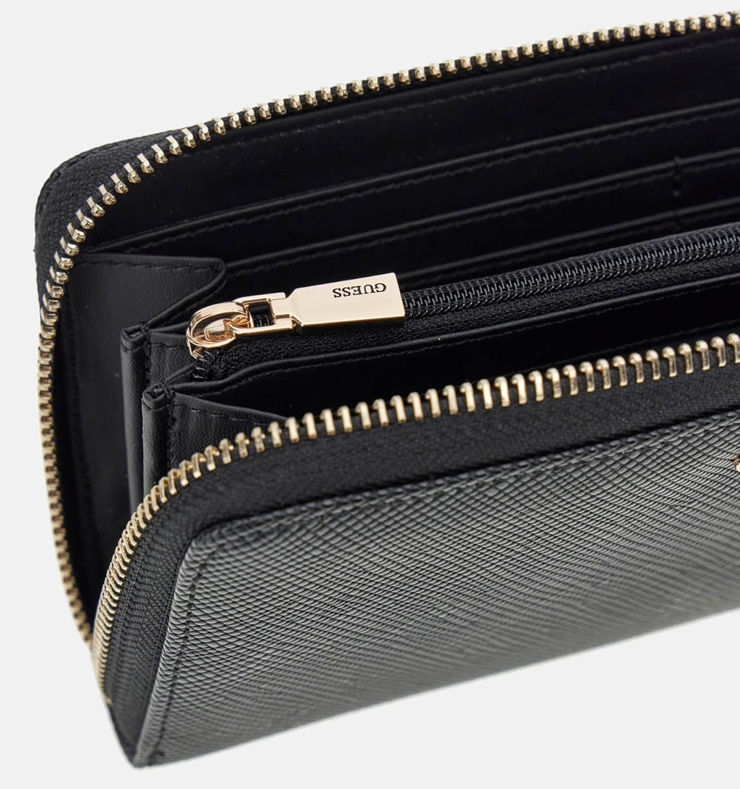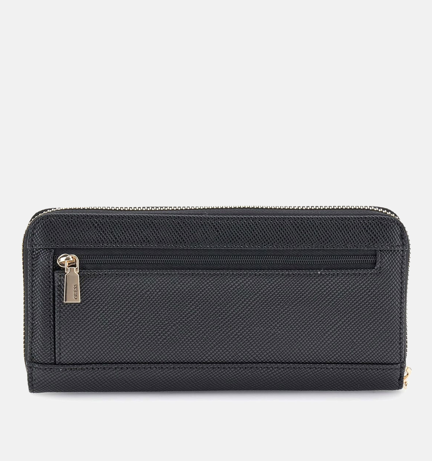 La fermeture éclair de ce porte-monnaie pour femmes est renforcée, ce qui permet de garder tous vos objets de valeur bien protégés et en sécurité. Grâce à la conception claire de ce portefeuille Guess, vous n'aurez plus jamais à chercher longtemps votre monnaie, vos cartes bancaires ou votre carte d'identité. Ce portefeuille zippé de Guess est fabriqué en simili cuir. Ce modèle est vraiment un incontournable ! Tendance, sûr et élégant.