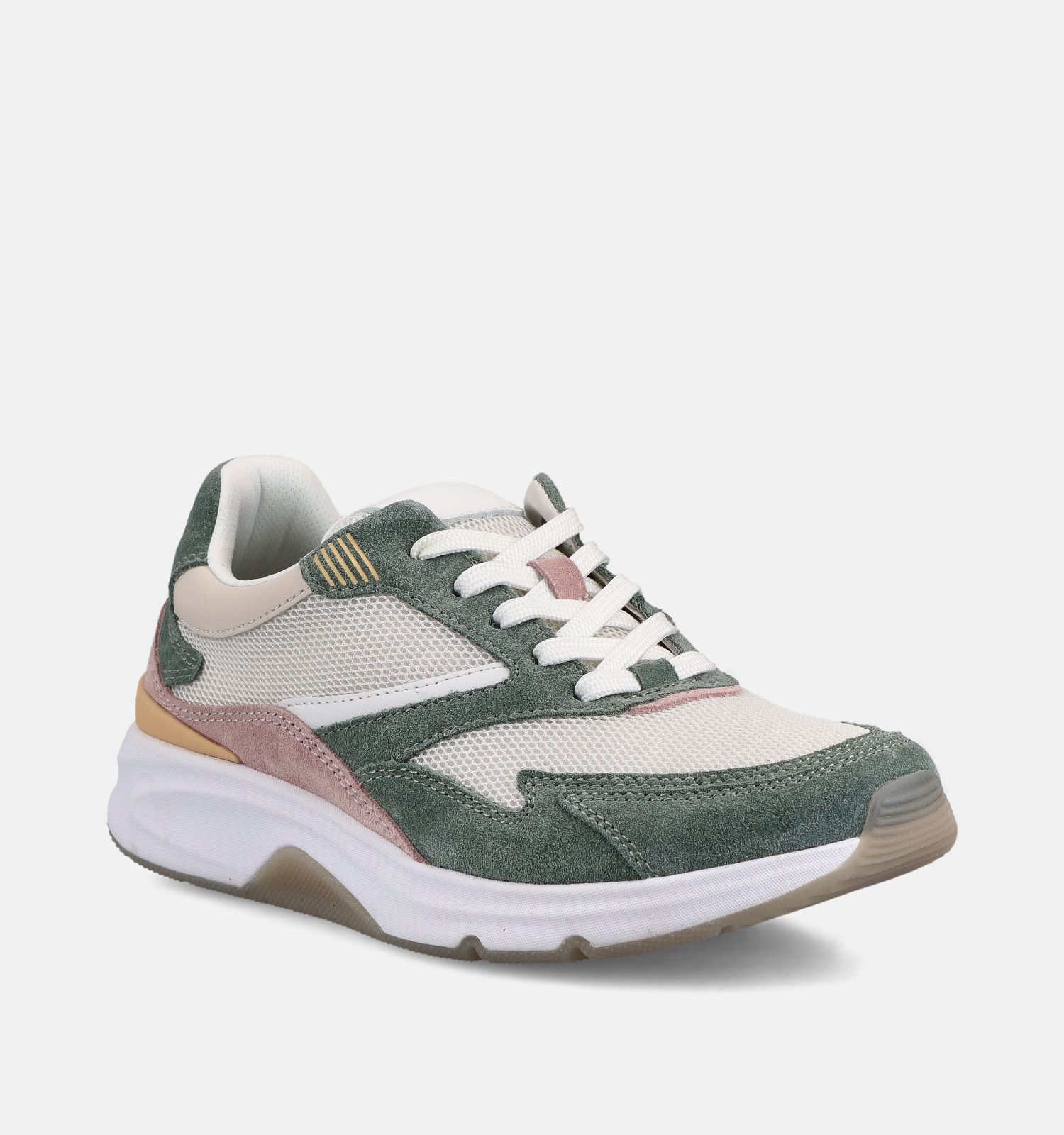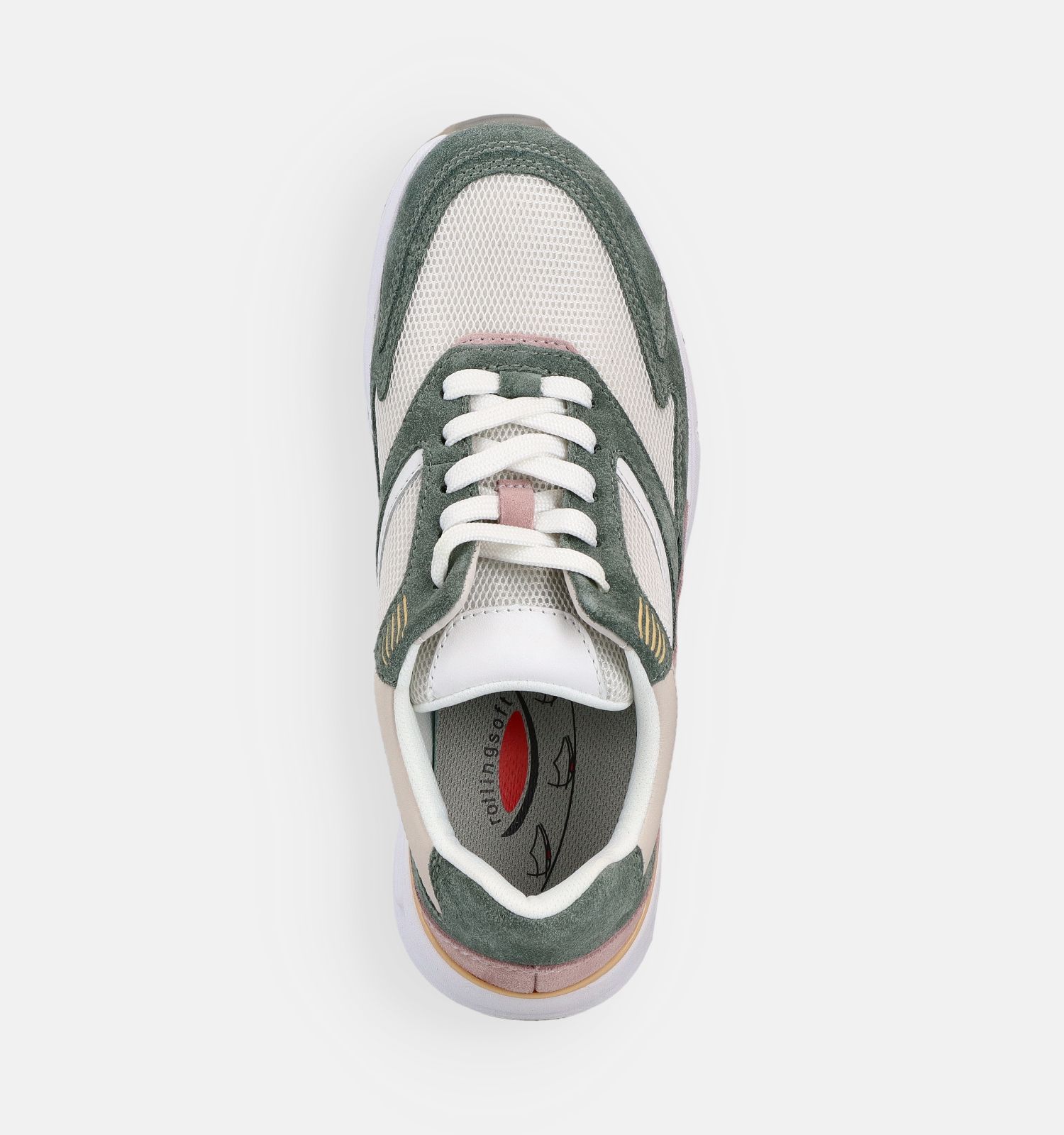Gabor RollingSoft est une collection de la marque de confort Gabor que vos pieds vont adorer ! Grâce à la technologie RollingSoft, vos pieds roulent naturellement, ce qui réduit la tension sur vos pieds. Ces baskets de Gabor en vert sont extra légères et flexibles pour assurer un plus grand confort de marche. Ces baskets de Gabor RollingSoft conviennent également aux orthèses, car les semelles intérieures sont amovibles. C'est également une bonne nouvelle pour les dames qui ne portent pas de semelles orthopédiques, car cela signifie que vous pouvez facilement retirer les semelles pour aérer les baskets !