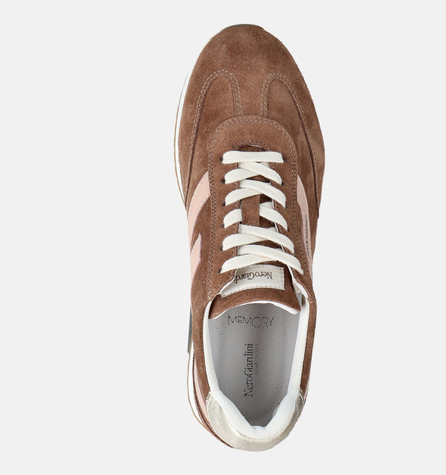 Ces baskets en marron de NeroGiardini sont à la fois modernes, tendance et très confortables. On voit immédiatement que ces baskets sont le produit de l'artisanat italien de la chaussure. Cela se voit notamment à la qualité exceptionnelle des matériaux, aux finitions soignées, au souci du confort et au look chic.