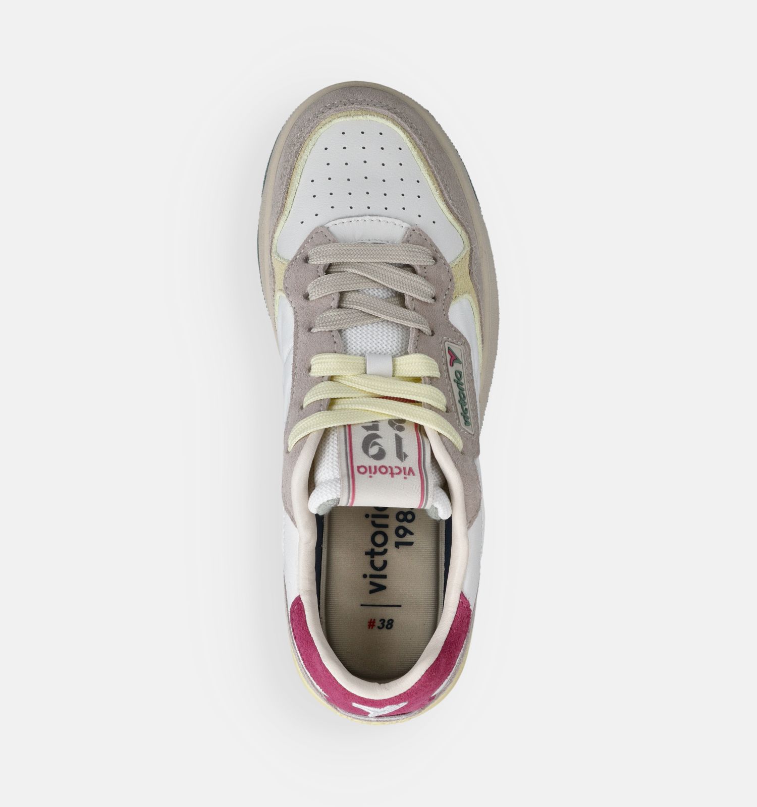 Ces baskets en blanc de Victoria sont fabriquées en cuir, avec une finition intérieure en textile. Traitez ces baskets pour femmes de Victoria avec un produit d'entretien avant de les enfiler. Cela permettra à ces chaussures de sport de rester en parfait état le plus longtemps possible.