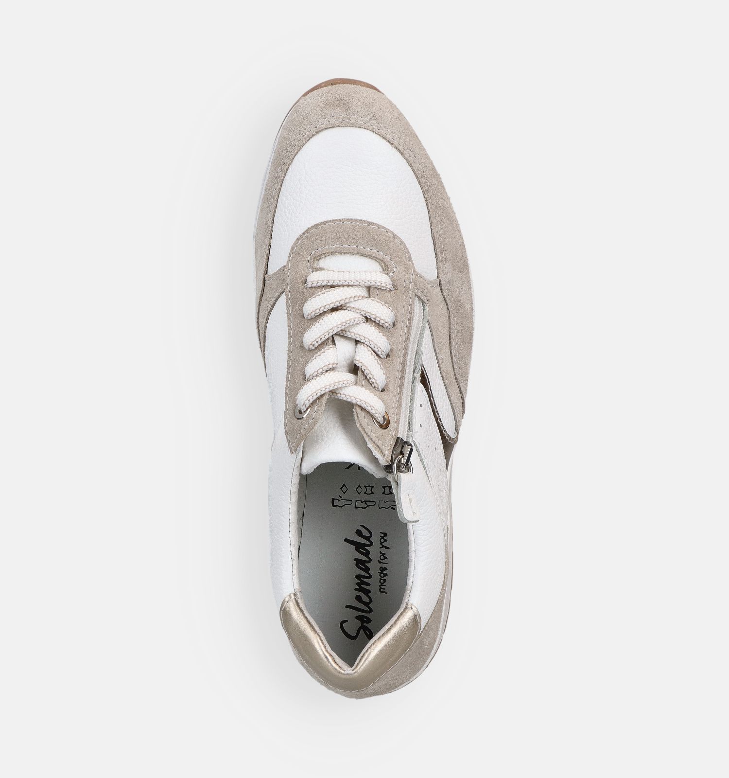 Bon à savoir : la largeur de chaussure de ce modèle de Solemade dans la couleur beige est de K - Extra large à l'avant.