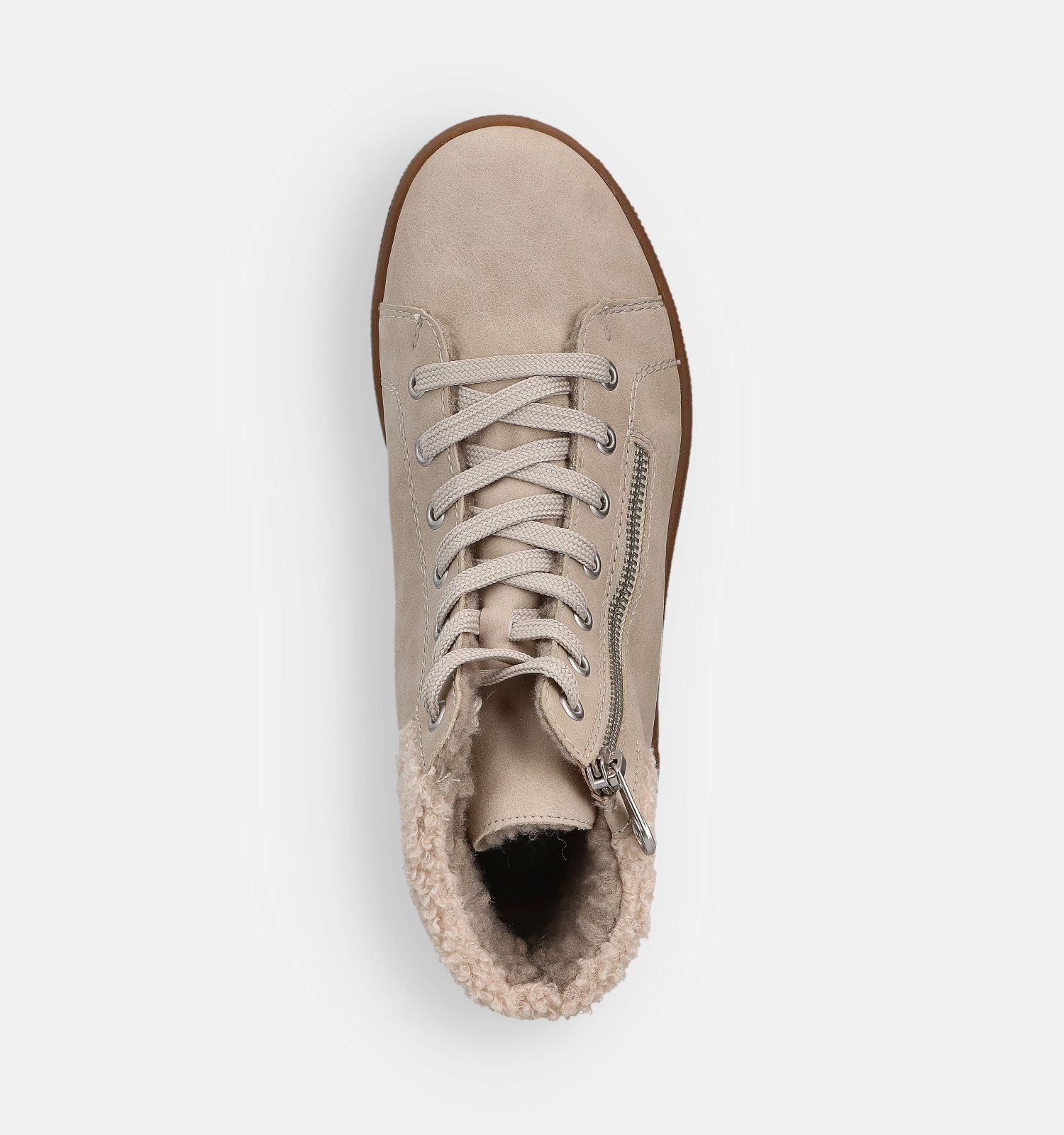 Ces baskets en beige sont fabriqué(e)s en daim robuste et en textile souple à l'intérieur. Ces matériaux sont particulièrement légers, un antidote à la sensation reconnaissable de pieds lourds présente après un certain temps. La coupe ergonomique de ces baskets Rieker pour femmes tient aussi compte du léger gonflement de tous les pieds en fin de journée. Ainsi, vous baignez dans un confort optimal toute la journée ! Ces baskets Rieker pour femmes possède(e)s une fermeture fermeture éclair & lacets.