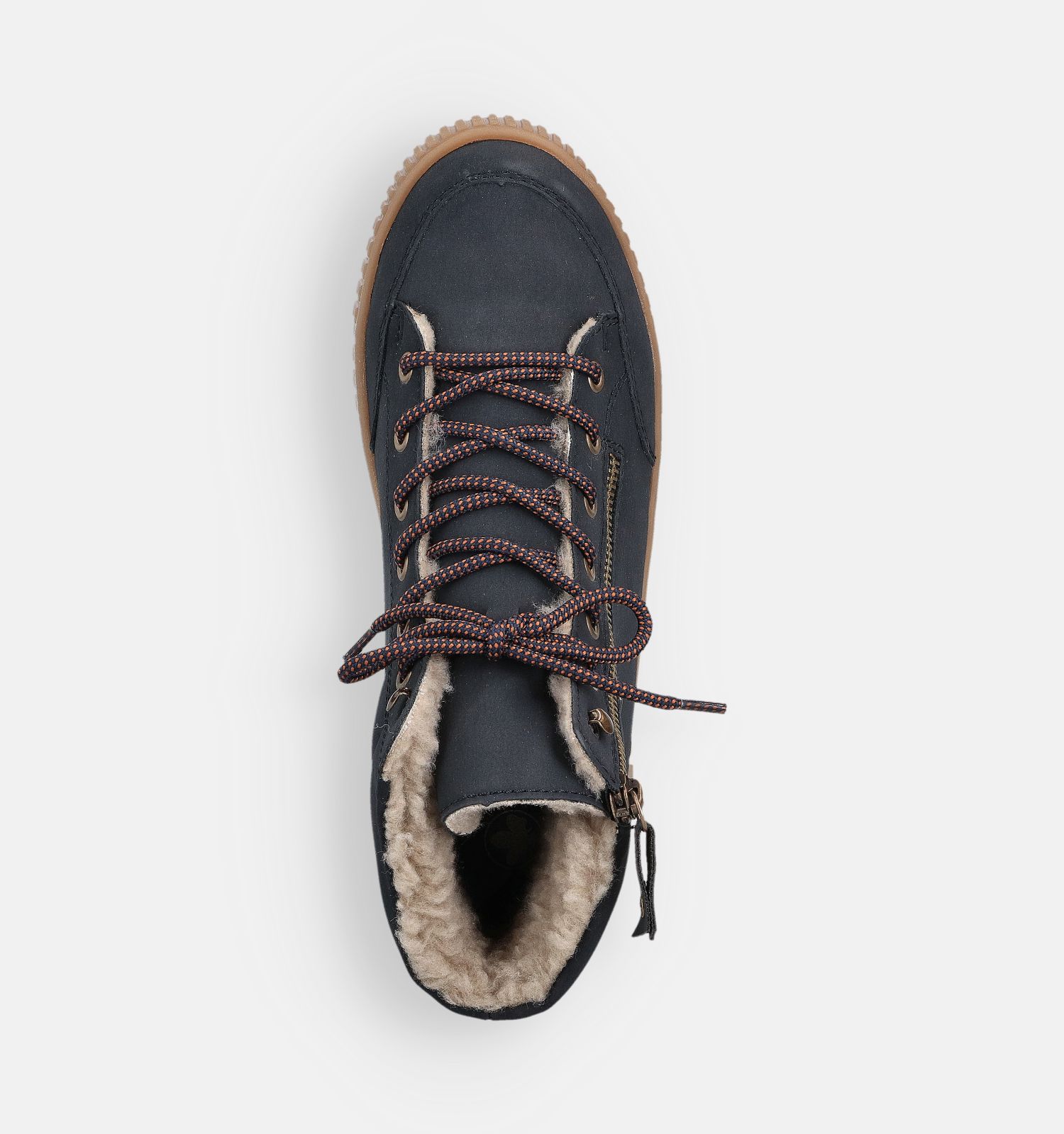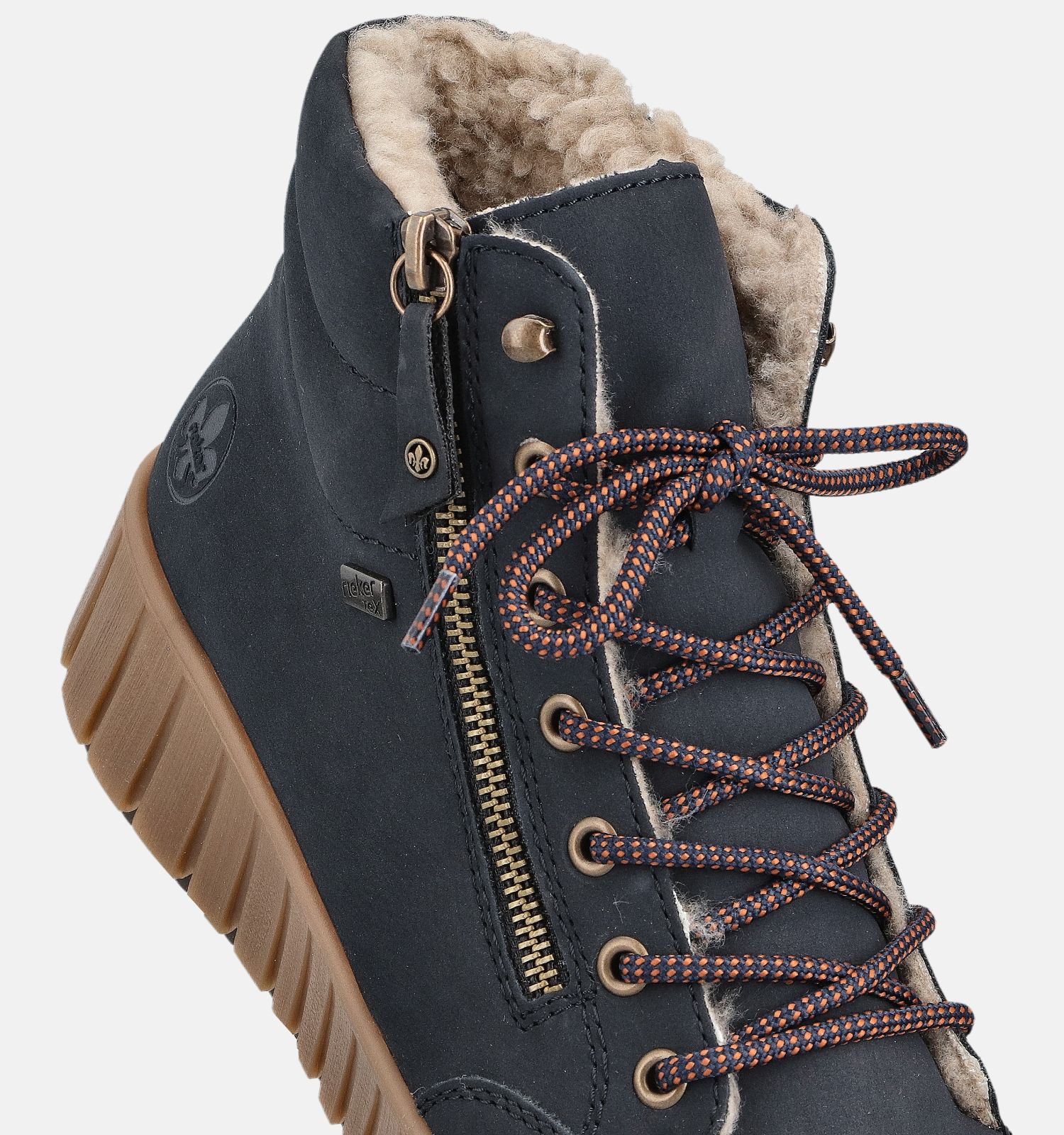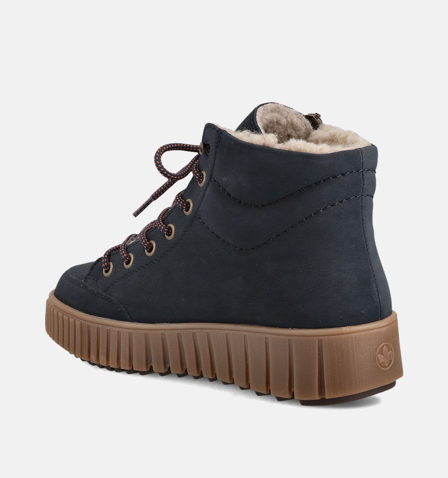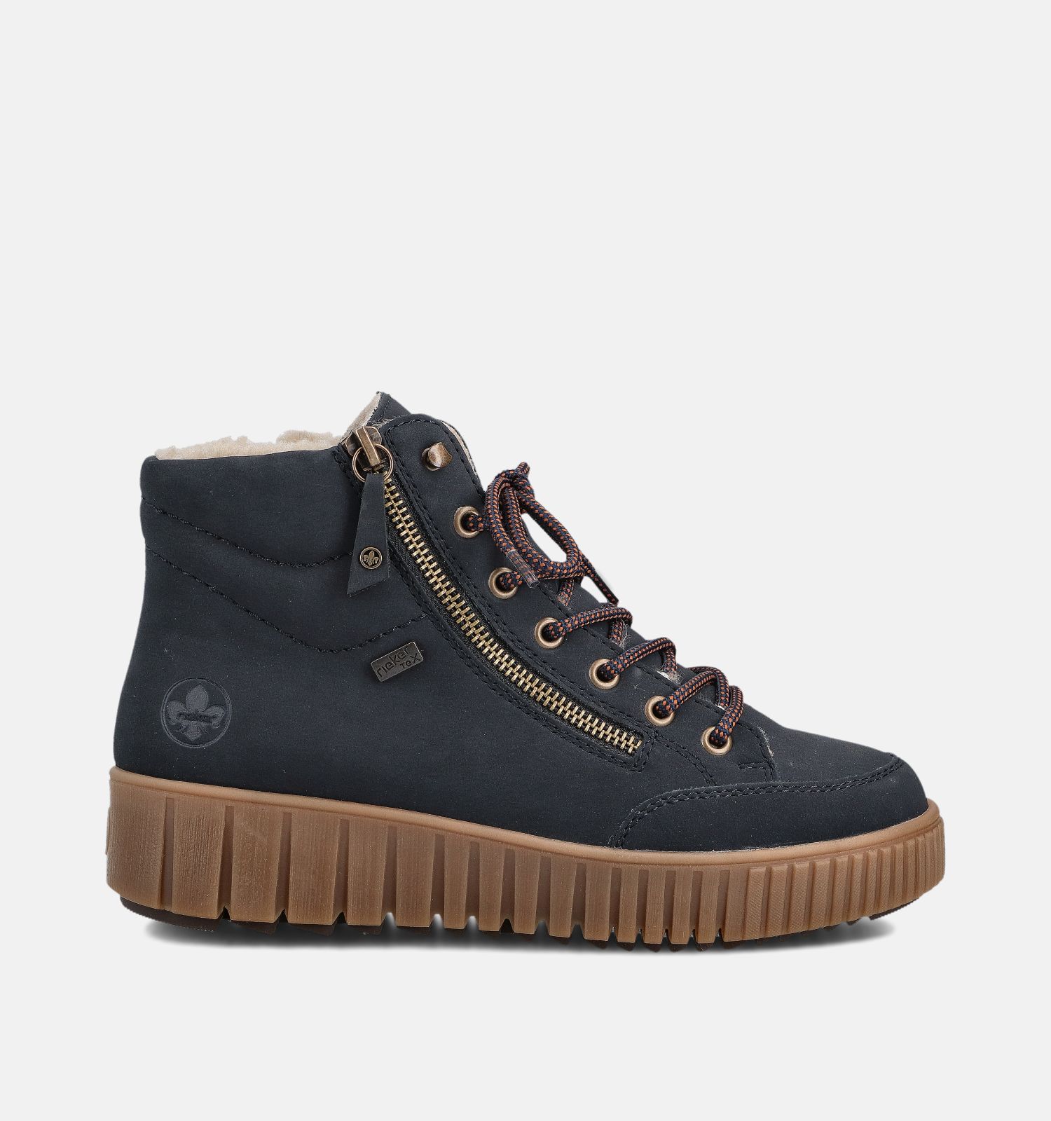Ces baskets en bleu sont fabriqué(e)s en simili cuir robuste et en textile souple à l'intérieur. Ces matériaux sont particulièrement légers, un antidote à la sensation reconnaissable de pieds lourds présente après un certain temps. La coupe ergonomique de ces baskets Rieker pour femmes tient aussi compte du léger gonflement de tous les pieds en fin de journée. Ainsi, vous baignez dans un confort optimal toute la journée ! Ces baskets Rieker pour femmes possède(e)s une fermeture fermeture éclair & lacets.