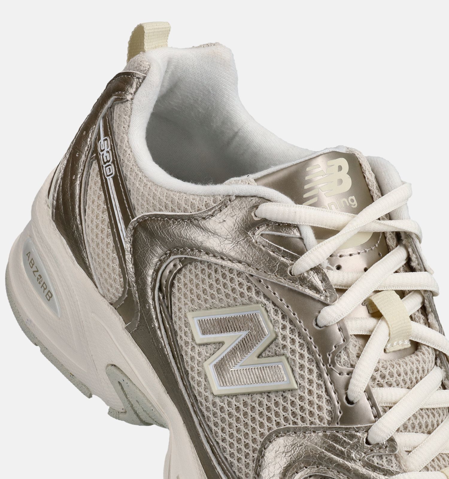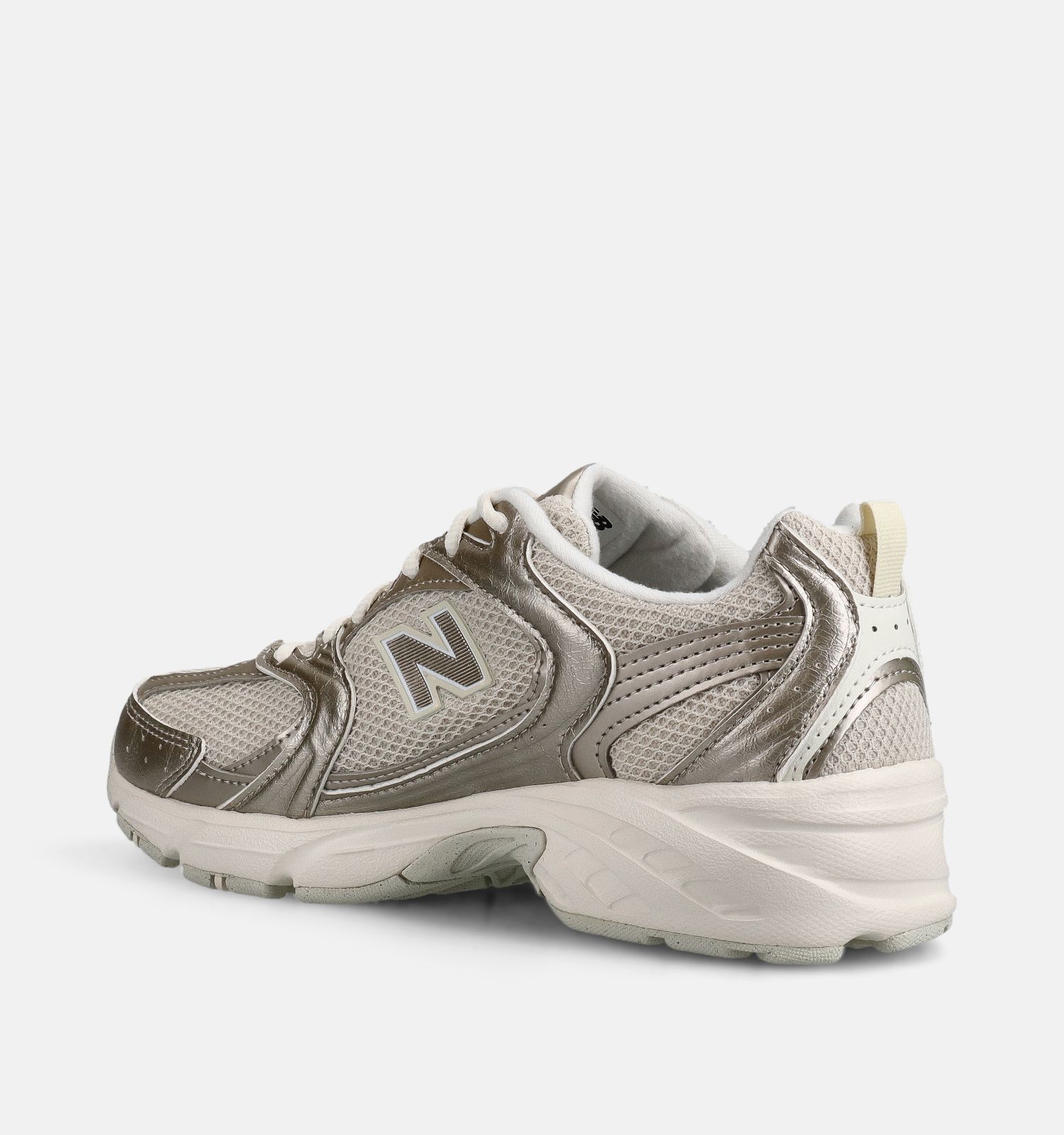 Ce modèle avec fermeture lacets convient aux femmes ayant une largeur de pied F - Semelle normale. Ces New Balance 530 en or sont tendance, confortables et un véritable incontournable pour les femmes !