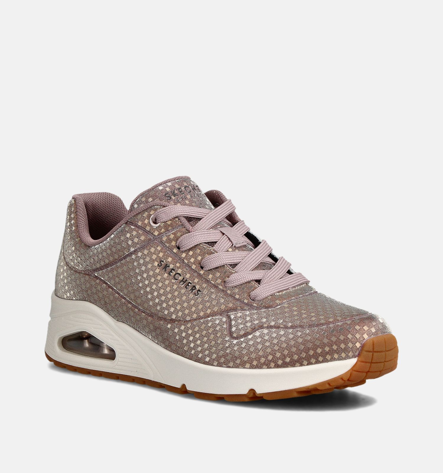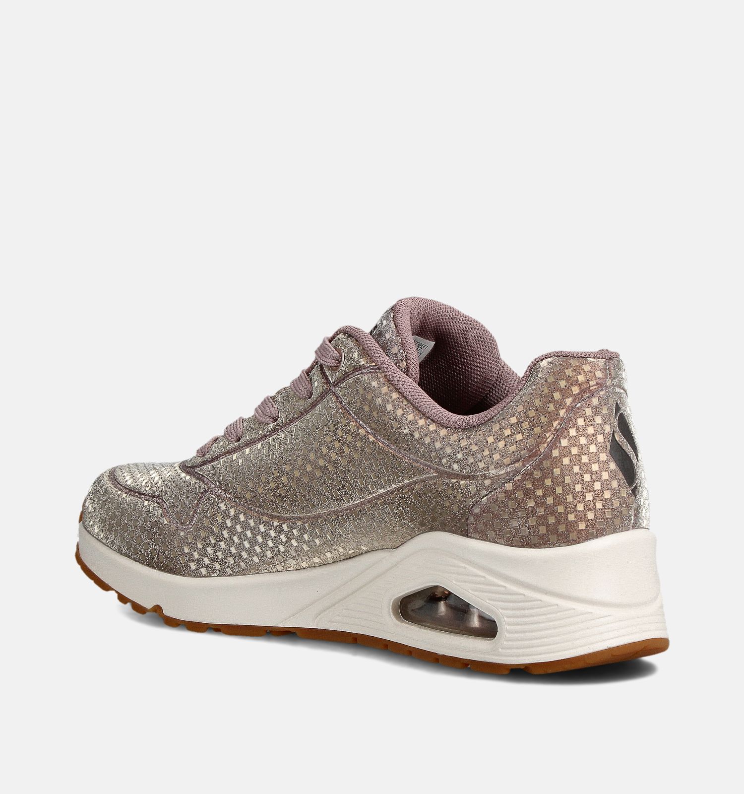 Bon à savoir pour l'entretien : l'intérieur de ces Skechers pour femmes est fabriqué en textile et l'extérieur se compose de simili cuir renforcé. Ce modèle en or possède une fermeture lacets.