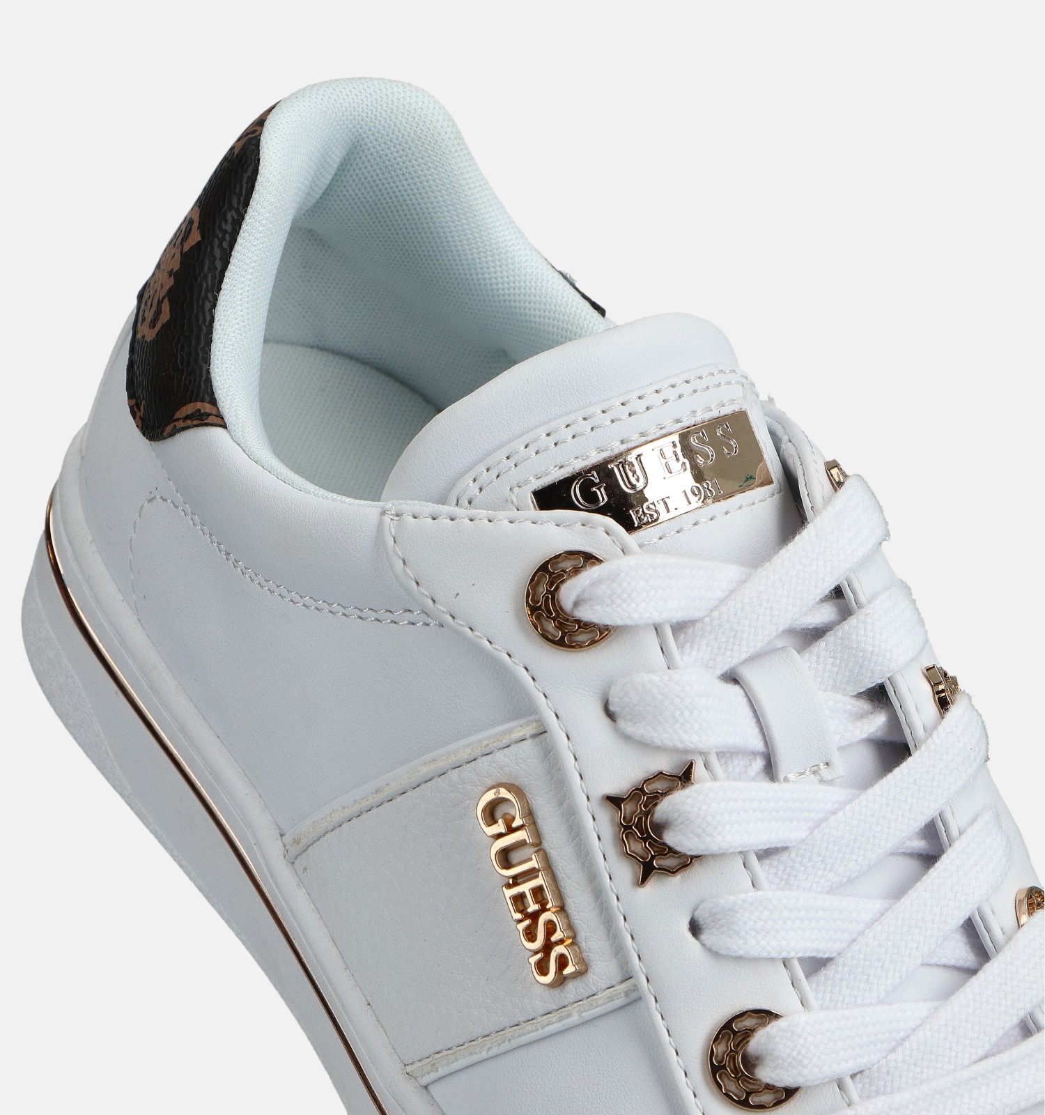 Inutile de présenter la marque américaine Guess : tout le monde la connaît ! Guess est l'une de ces marques de mode qui ne suit pas les tendances, mais contribue à les créer. Guess est innovante, tendance et glamour. Et cette marque de luxe n'est pas seulement un précurseur en termes d'esthétique. Les chaussures Guess sont de haute qualité et fabriquées avec le souci du détail, ce qui en fait un excellent choix en termes de rapport qualité-prix. Combinez ces avantages avec le confort de marche oh combien agréable, et vous obtenez une marque de chaussures fiable à la réputation solide. En ligne et dans nos boutiques, vous pouvez découvrir la nouvelle collection Guess, qui comprend des baskets, des bottines, des sandales, des bottes à lacets, des nu-pieds et des bottes de motard. Il existe une offre pour les femmes et pour les hommes, de la taille 36 à la taille 46. Les baskets pour femmes Guess sont très appréciées. Ces baskets tendance pour femmes sont irrésistibles : elles ont un aspect luxueux, sont faciles à combiner avec toutes vos tenues et ont une belle coupe. Trouvez l'inspiration et laissez-vous surprendre en ligne ou en magasin par la polyvalence des chaussures Guess ! Et, bon à savoir : la marque de luxe Guess est elle aussi activement impliquée dans le développement durable ! En 2023, Guess a même reçu le prix ESG " Best Company for Sustainability Reporting ", une récompense qui met en avant la responsabilité sociale des entreprises et le développement durable.