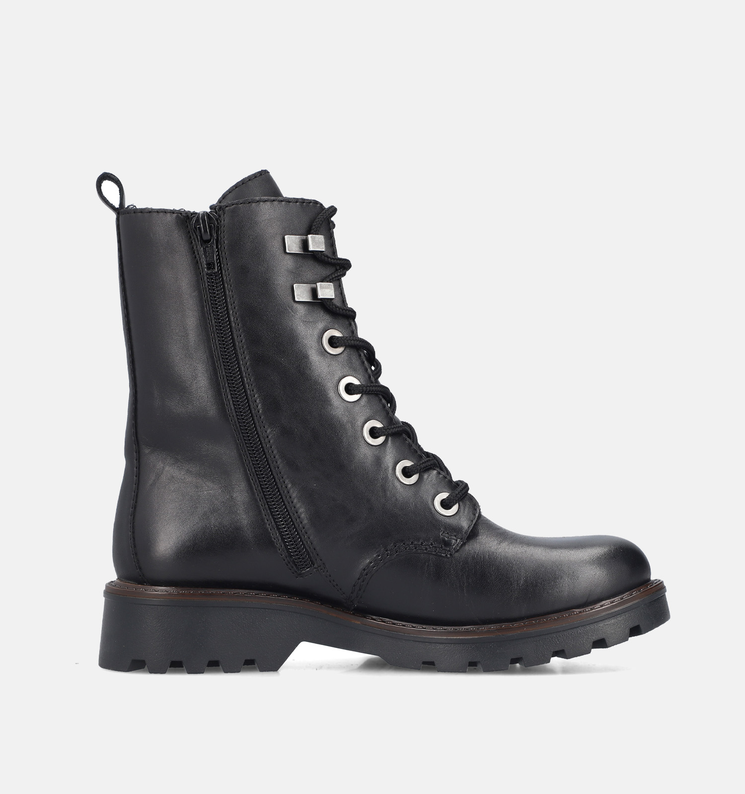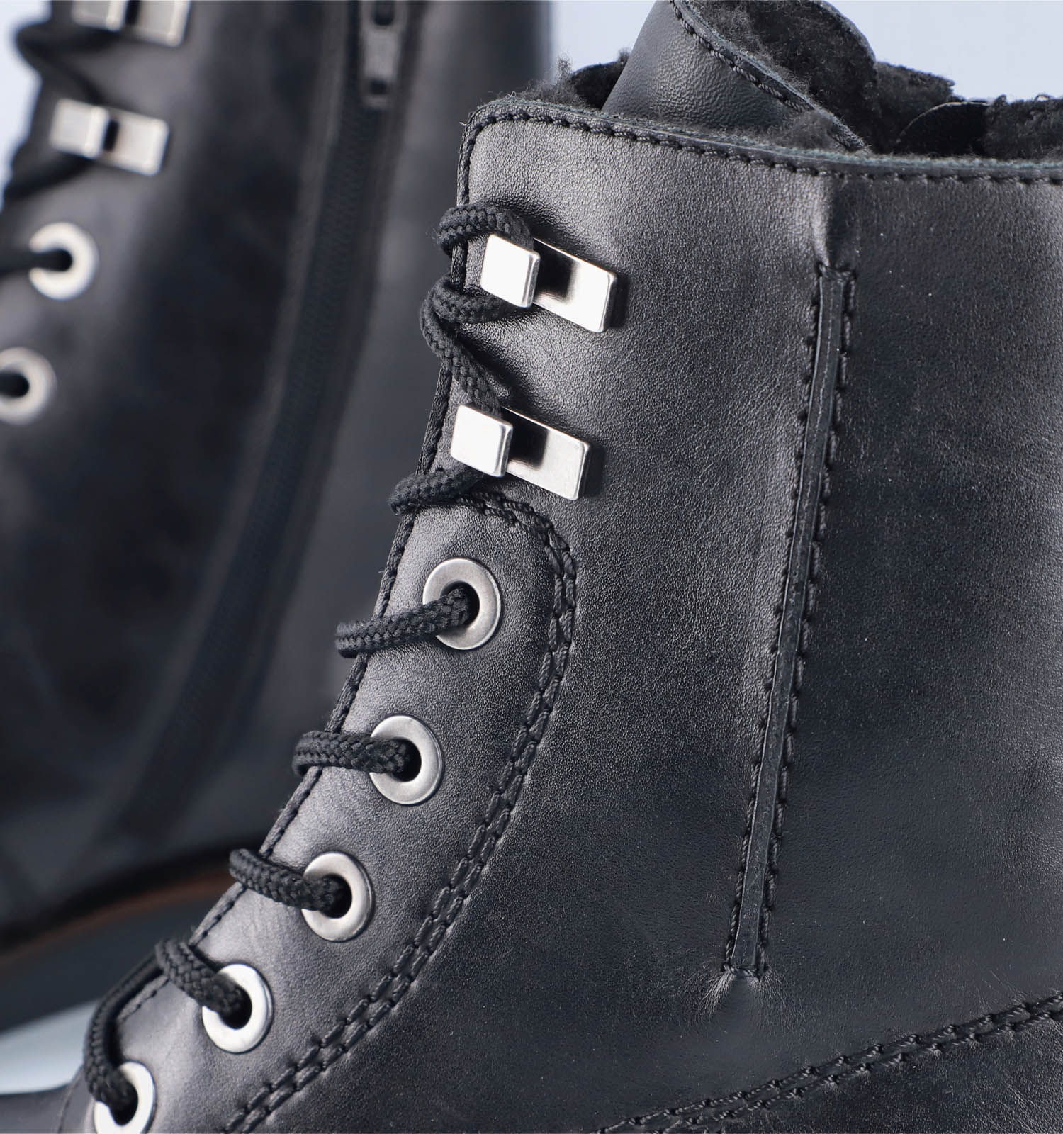 Ces boots en noir sont fabriqué(e)s en cuir robuste et en textile souple à l'intérieur. Ces matériaux sont particulièrement légers, un antidote à la sensation reconnaissable de pieds lourds présente après un certain temps. La coupe ergonomique de ces boots Rieker pour femmes tient aussi compte du léger gonflement de tous les pieds en fin de journée. Ainsi, vous baignez dans un confort optimal toute la journée ! Ces boots Rieker pour femmes possède(e)s une fermeture fermeture éclair & lacets.