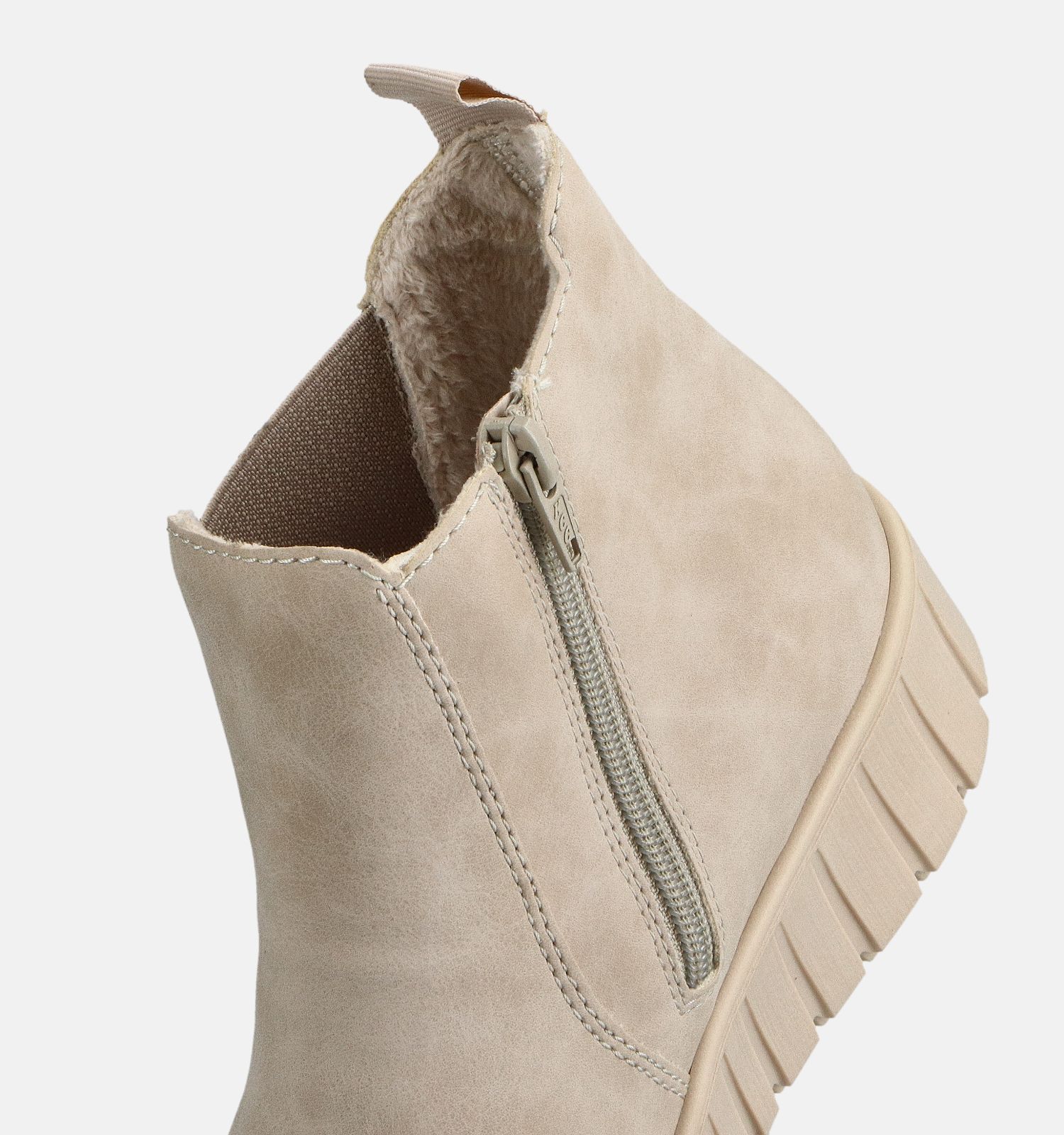 Ces boots en beige sont fabriqué(e)s en simili cuir robuste et en textile souple à l'intérieur. Ces matériaux sont particulièrement légers, un antidote à la sensation reconnaissable de pieds lourds présente après un certain temps. La coupe ergonomique de ces boots Rieker pour femmes tient aussi compte du léger gonflement de tous les pieds en fin de journée. Ainsi, vous baignez dans un confort optimal toute la journée ! Ces boots Rieker pour femmes possède(e)s une fermeture élastique, fermeture éclair.