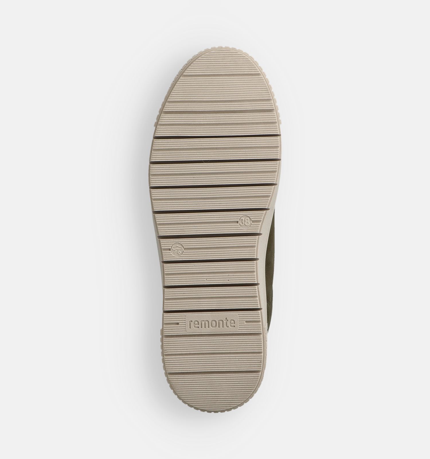 Ce modèle de Remonte a un aspect moderne et est fabriqué en daim. À l'intérieur, ces baskets montantes pour femmes sont dotées d'un textile doux. Conservez la couleur vert le plus longtemps possible en traitant ces baskets hautes pour femmes avec un produit d'entretien adapté à daim.