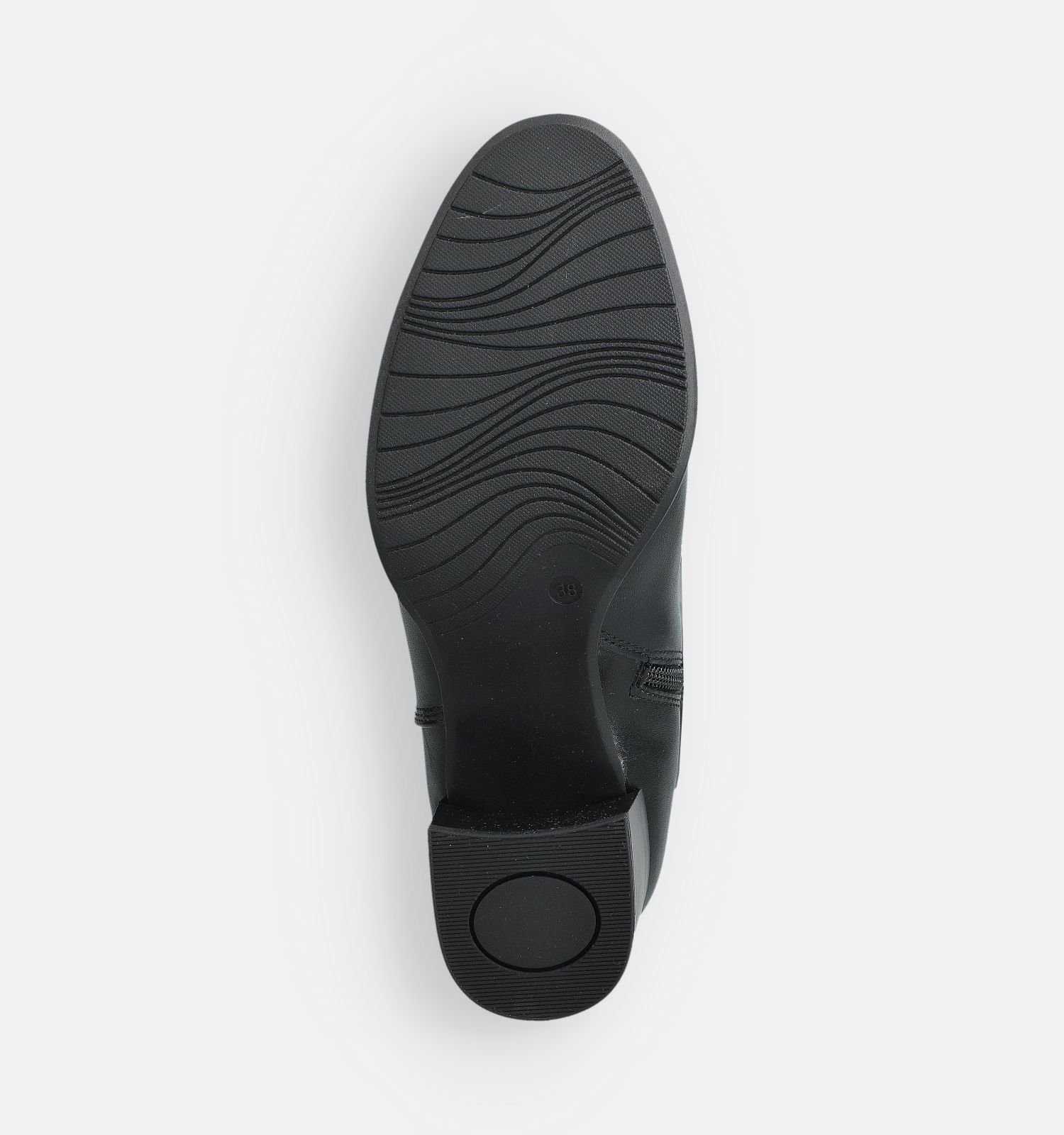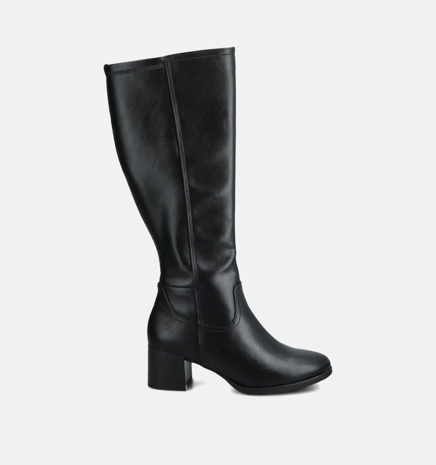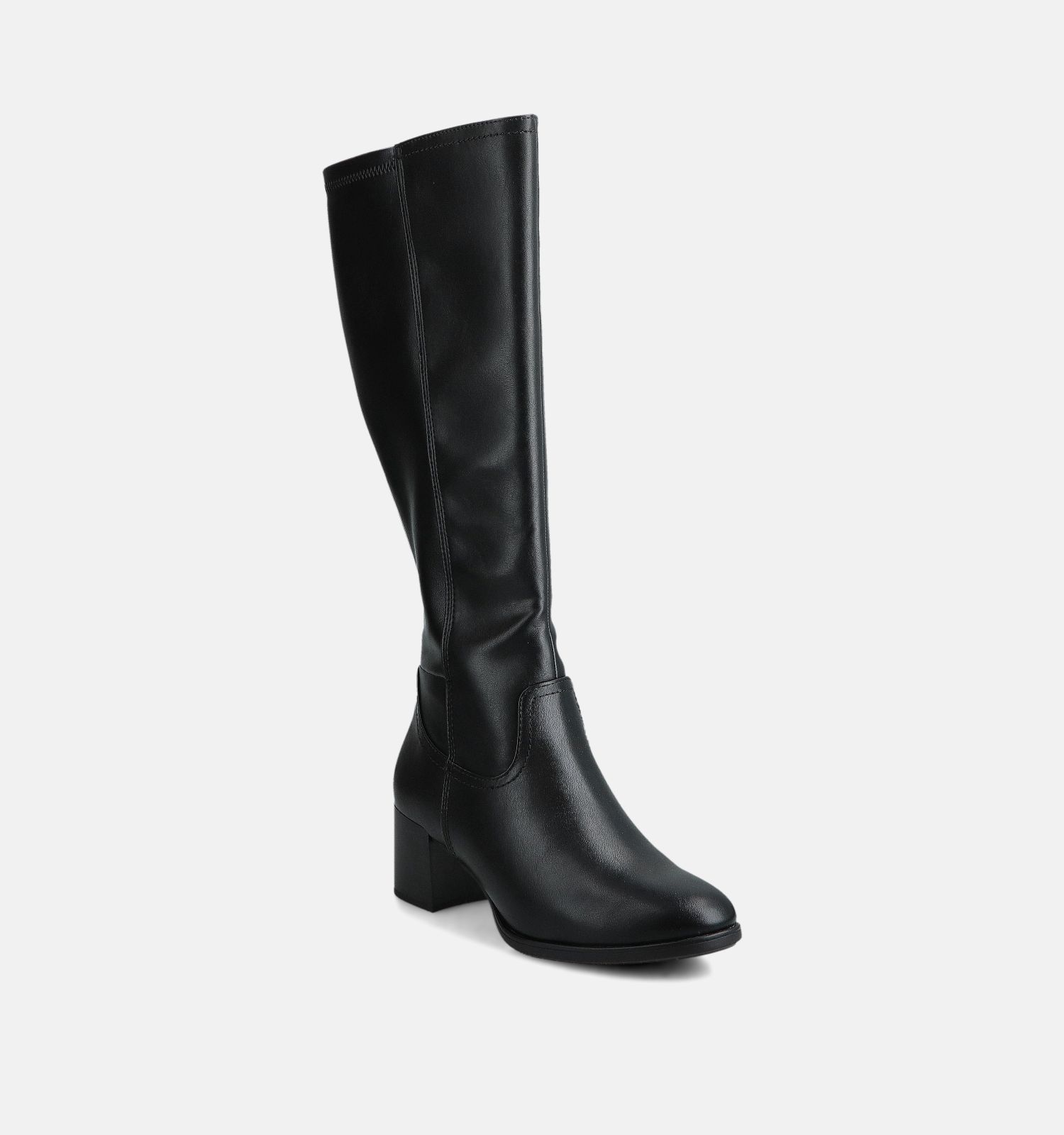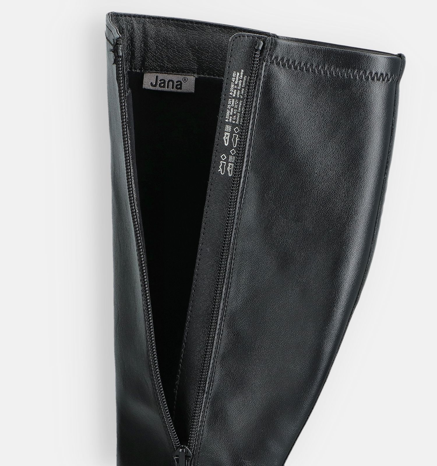 Ces bottes à talons bas de Jana atteignent juste en dessous des genoux avec une hauteur de tige de 40 cm. Grâce à cette longueur, ces bottes hauteur genou offrent plus de soutien et de stabilité que des bottines plus courtes. La largeur du mollet de ces bottes Jana en noir et simili cuir est Moyen (35 - 39 cm).