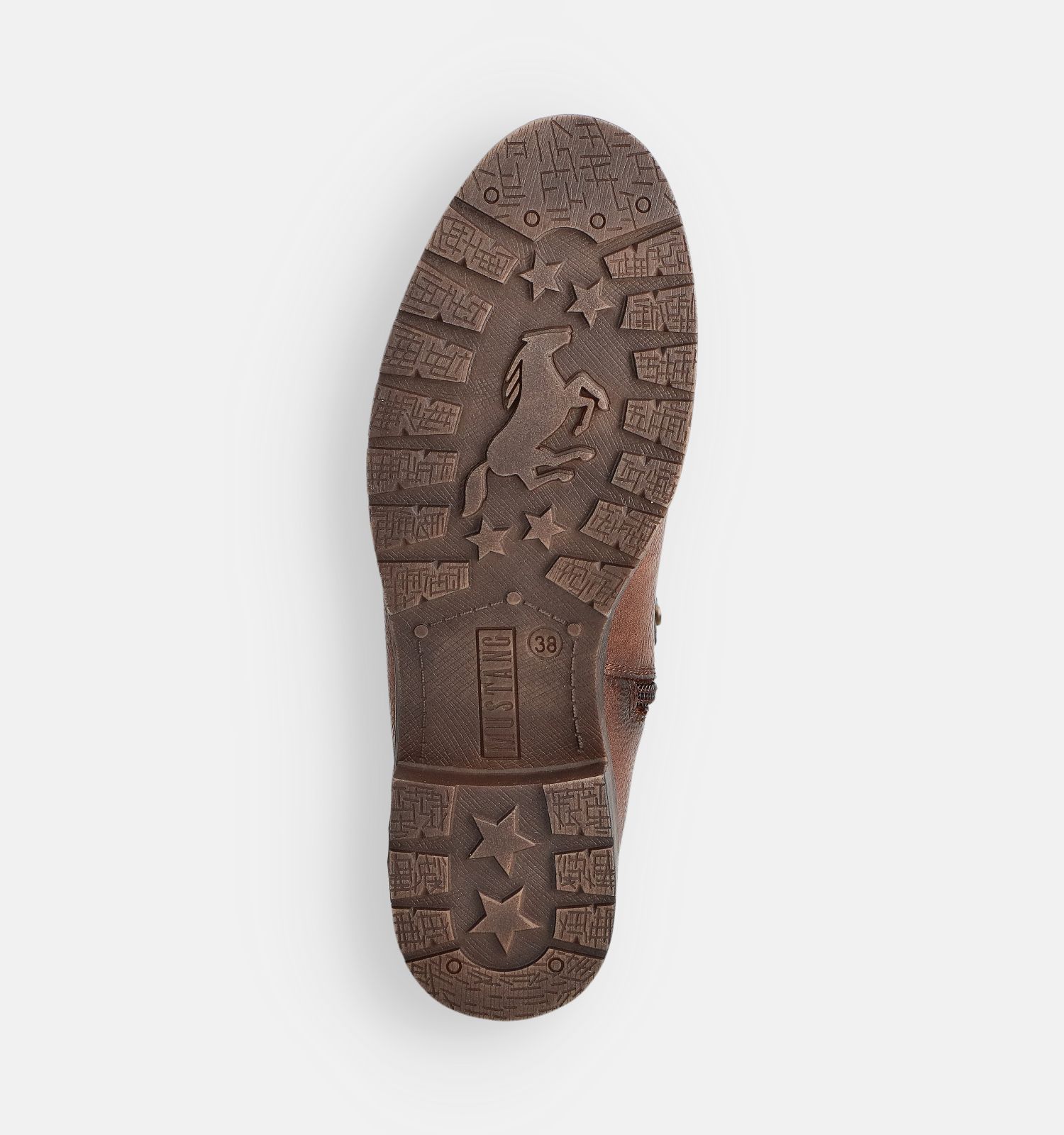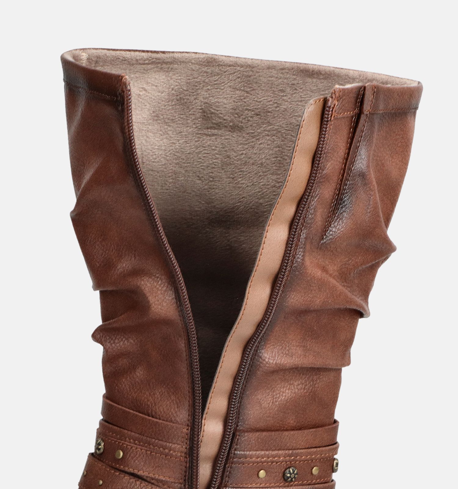 Ces bottes à tige souple en simili cuir cognac font partie de nos coups de cœur. Le mélange entre féminité et allure décontractée fonctionne à merveille ! Vous pouvez facilement associer ces bottes Mustang à aussi bien avec des tenues élégantes et fluides – comme une robe fleurie en cognac – qu’avec un look plus casual, par exemple un jean.