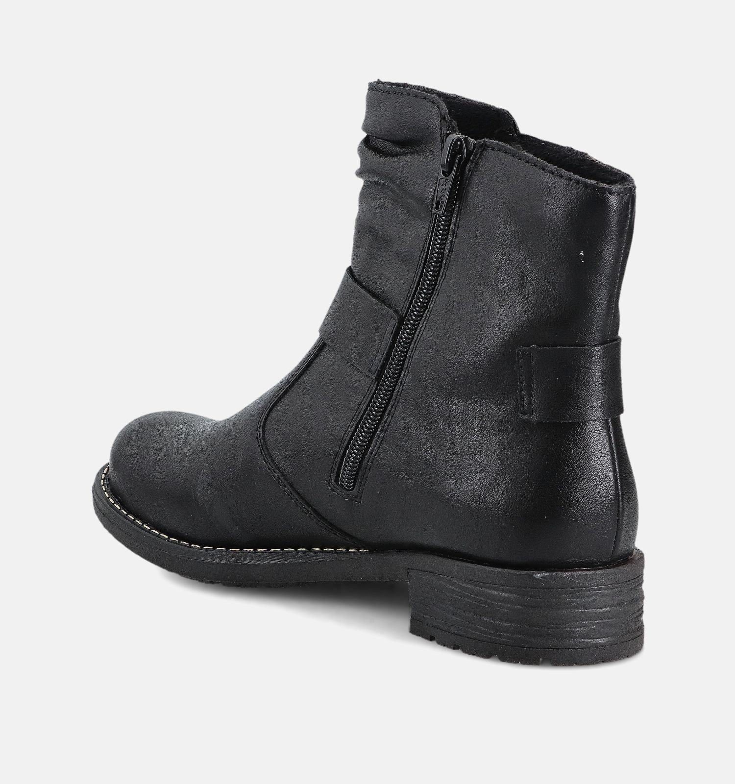 Ces bottines en noir sont fabriqué(e)s en simili cuir robuste et en textile souple à l'intérieur. Ces matériaux sont particulièrement légers, un antidote à la sensation reconnaissable de pieds lourds présente après un certain temps. La coupe ergonomique de ces bottines Rieker pour femmes tient aussi compte du léger gonflement de tous les pieds en fin de journée. Ainsi, vous baignez dans un confort optimal toute la journée ! Ces bottines Rieker pour femmes possède(e)s une fermeture fermeture éclair.