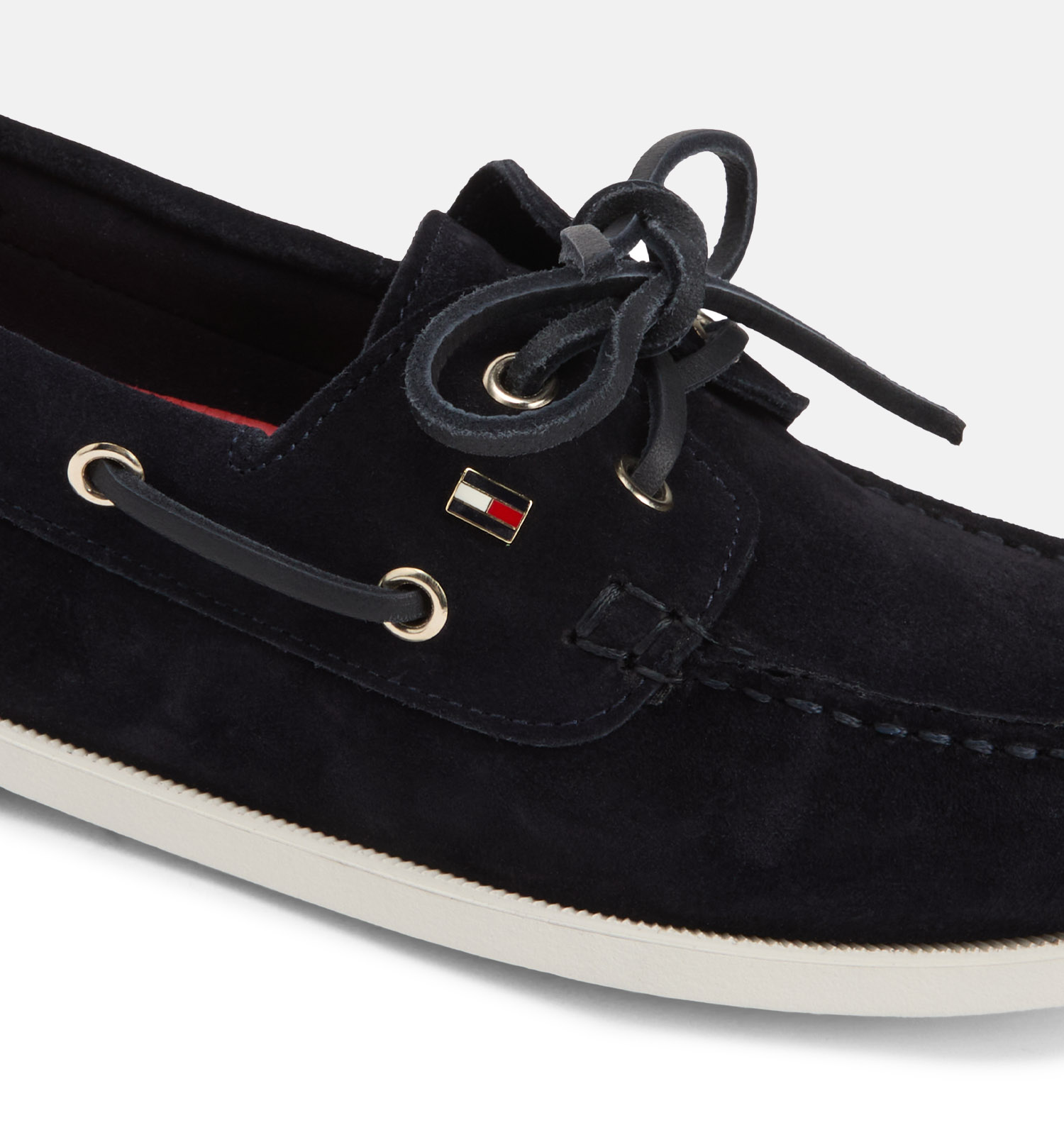 Ces chaussures estivales en bleu et daim sont dotées d’une semelle en caoutchouc à motif en relief pour une adhérence optimale. Ce modèle bas signé Tommy Hilfiger laisse les chevilles bien au frais – un vrai plus par temps chaud. Les coutures renforcées sont visibles mais élégantes, et apportent la touche finale au look typique des chaussures bateau.