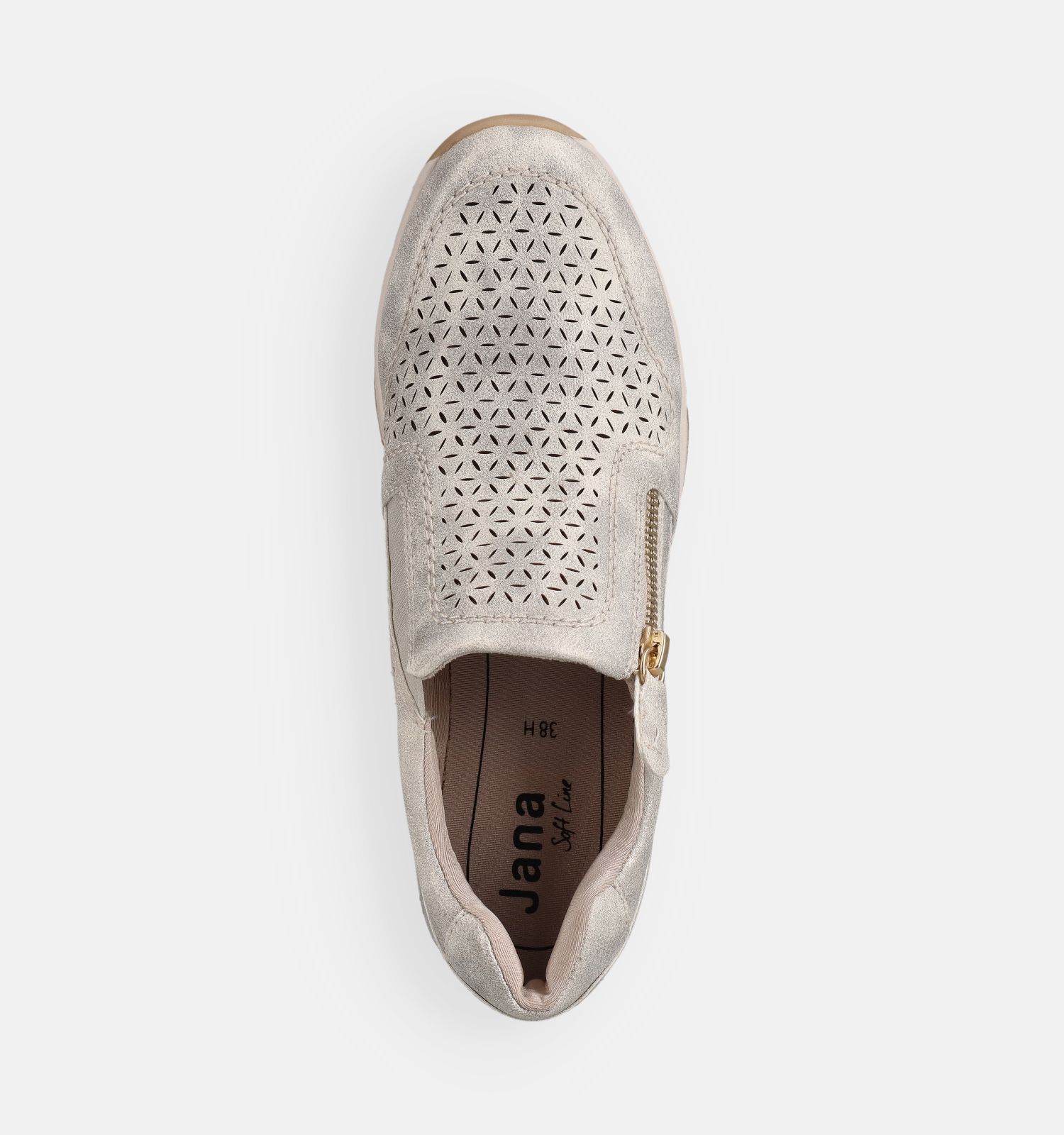 La marque de chaussures confort Jana s’adresse avec ces chaussures à fermeture éclair femmes qui accordent de l’importance à un soutien supplémentaire, un confort de port optimal et une forme ergonomique. Ces Jana chaussures pour femmes disposent d’une forme confortable qui soutient efficacement la voûte plantaire et les talons. Ces chaussures confort en beige et simili cuir permettent un déroulement naturel du pied, ce qui améliore la stabilité et réduit la pression sur les pieds et les articulations. Légères aux pieds grâce à leur faible poids – un vrai soulagement pour les pieds fatigués !