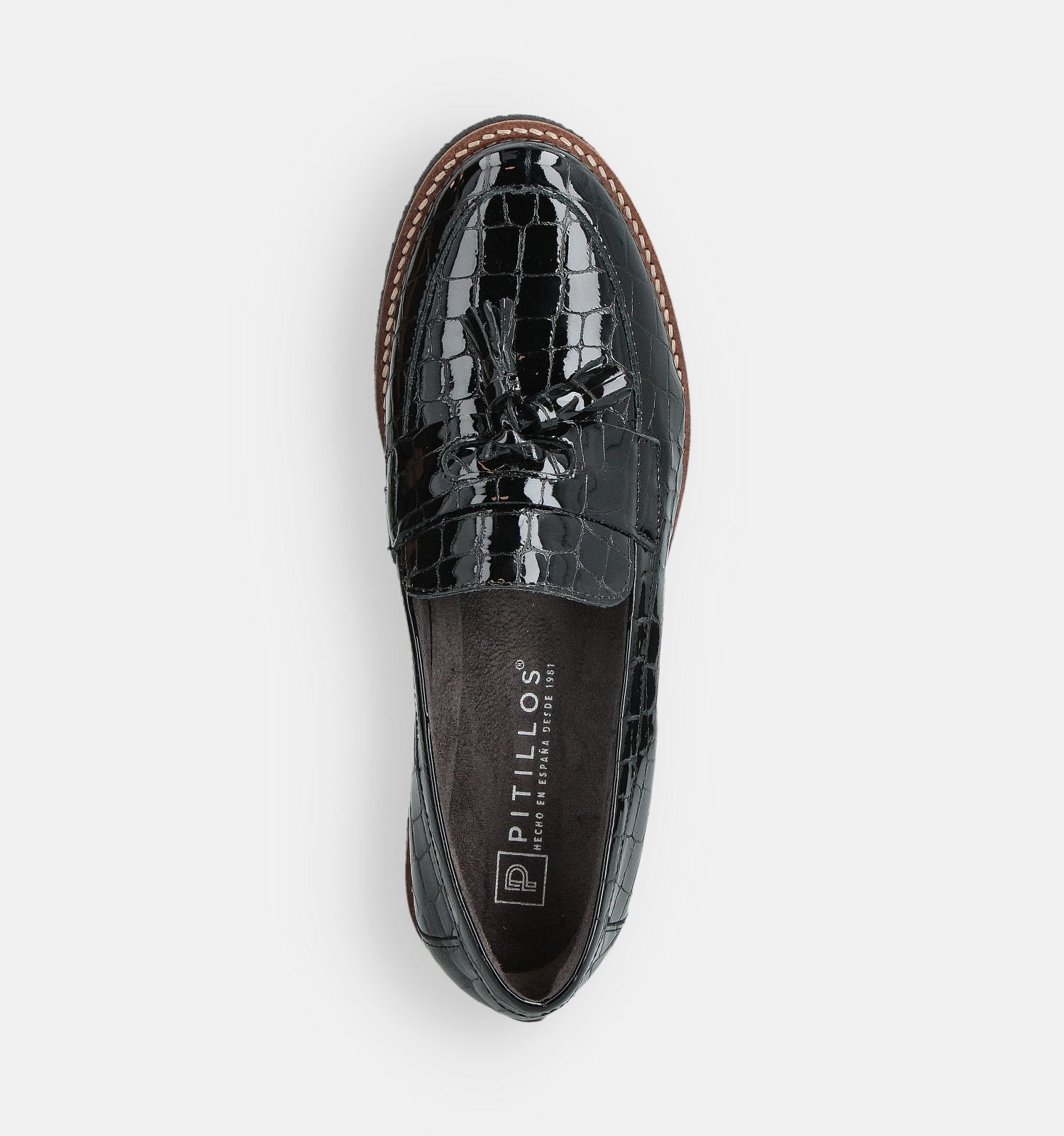 Ce mocassin pour femme (en noir) est doublé de cuir, pour un confort de marche accru. Ce modèle Pitillos a une largeur de semelle F - Semelle normale. Ces loafers sont un véritable atout pour votre collection de chaussures.