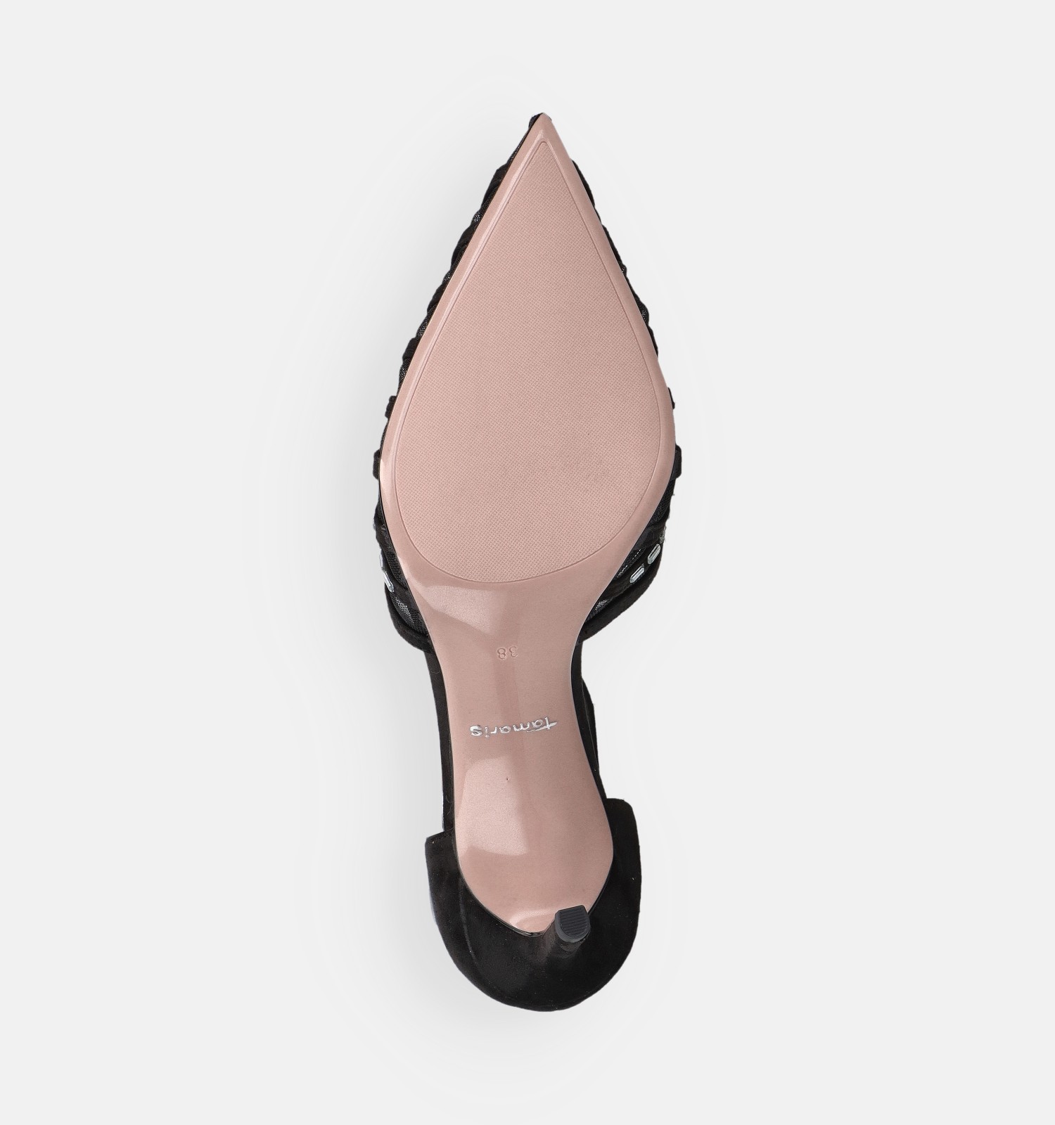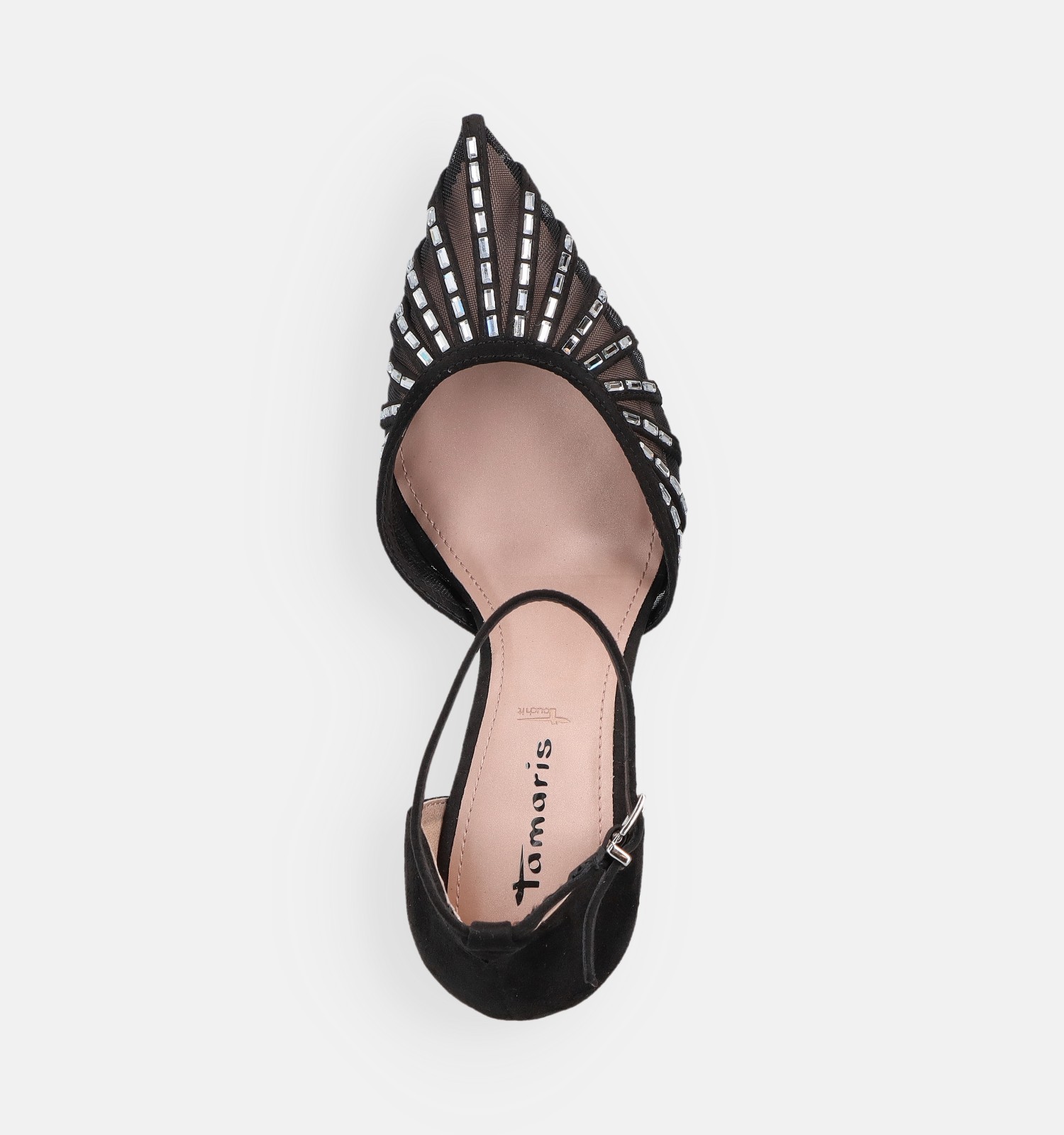 Ces escarpins en noir de la marque Tamaris sont dotés d’une bride supplémentaire. Elle apporte une touche élégante et féminine, tout en offrant plus de stabilité à la marche. Grâce à cette bride, vos pieds restent bien en place, ce qui réduit les frottements et diminue fortement le risque d’ampoules ou de glissades. Résultat : plus de sécurité, de confiance en soi et de confort.