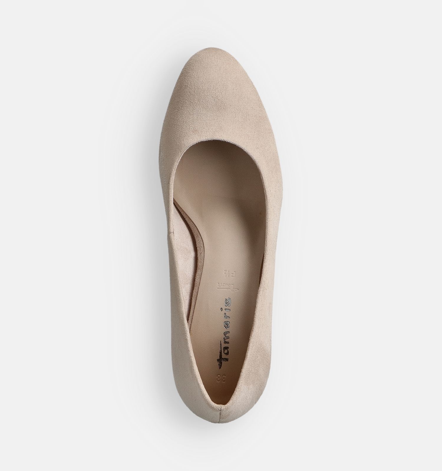 Ces heels en blanc sont doublées à l’intérieur d’un textile d’une douceur soyeuse — pour un confort de marche remarquable, même après une journée entière. La hauteur de ces escarpins talon entonnoir est de : entre (5 - 8 cm). Assez basse pour rester confortable, assez haute pour sublimer votre tenue avec une touche d’élégance et de féminité. La largeur de ces superbes escarpins Tamaris est : F - Semelle normale.