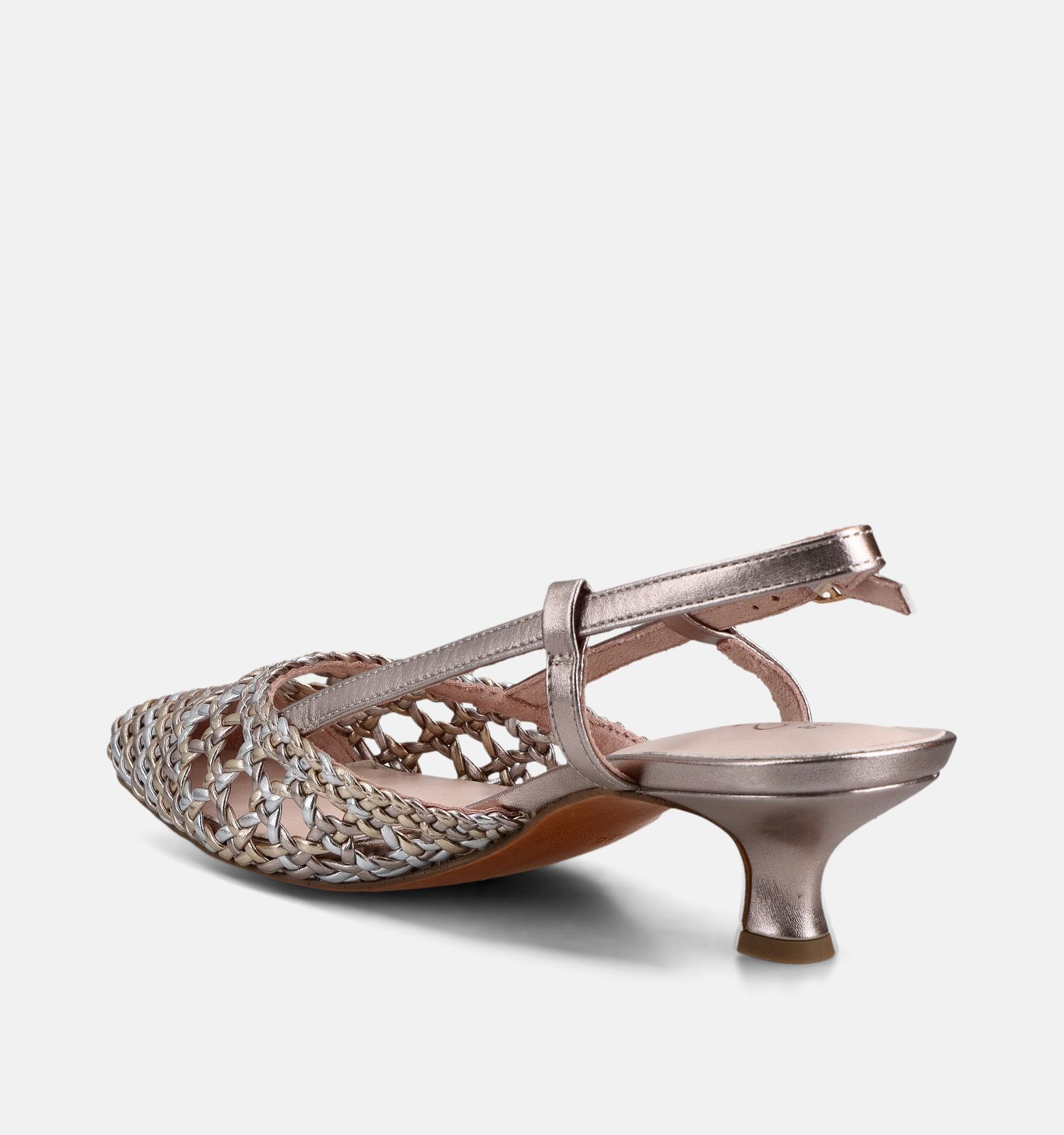 Les escarpins à talon ouvert se marient parfaitement avec des pantalons 7/8, des robes, des jupes-culottes ou des shorts habillés. Fais subtilement ressortir ce joli ton argent dans ta tenue pour un look parfaitement abouti.