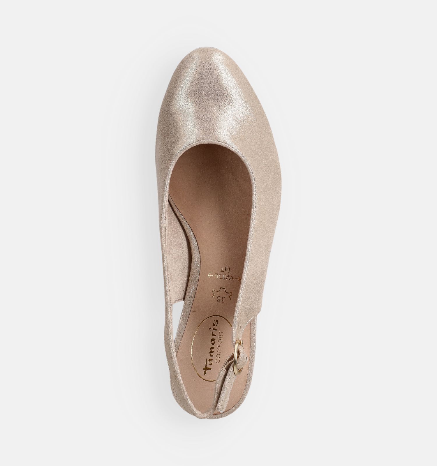 Tamaris Comfort est la dernière collection de chaussures de Tamaris ! Ces escarpins en or font partie de cette nouvelle collection. L'assise plantaire amovible est ergonomique et soulage la pression sur les talons et sur la plante du pied. Cela garantit un confort de marche quasi paradisiaque. La collection Tamaris Comfort se distingue par sa coupe. En réalité, ces escarpins sont juste un peu plus larges en termes de forme, donnant aux pieds plus d'espace pour respirer et juste assez pour soulager ces pieds légèrement gonflés à la fin de la journée. Ces escarpins en or sont fabriqués à partir de daim, avec une finition de textile à l'intérieur.