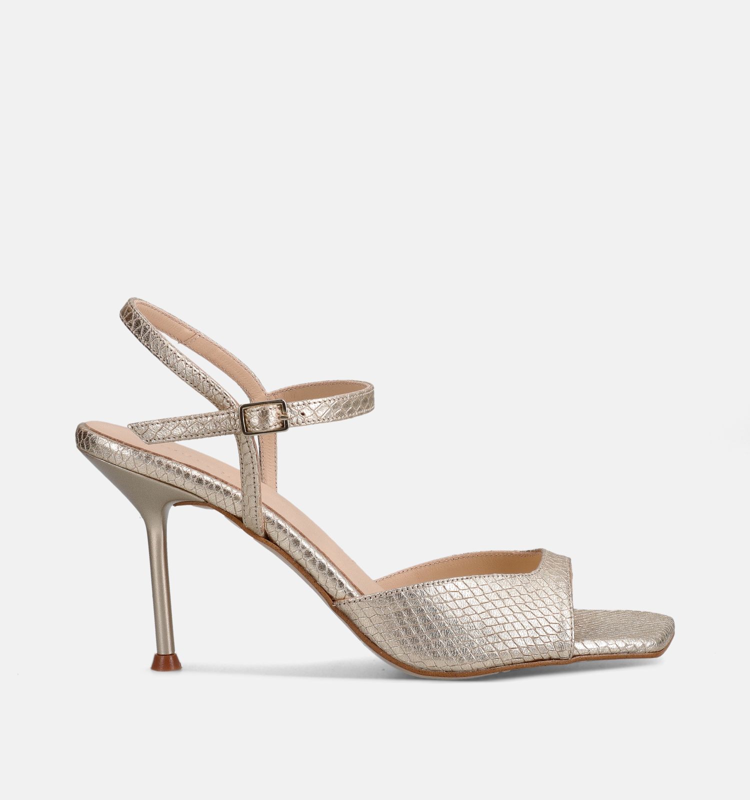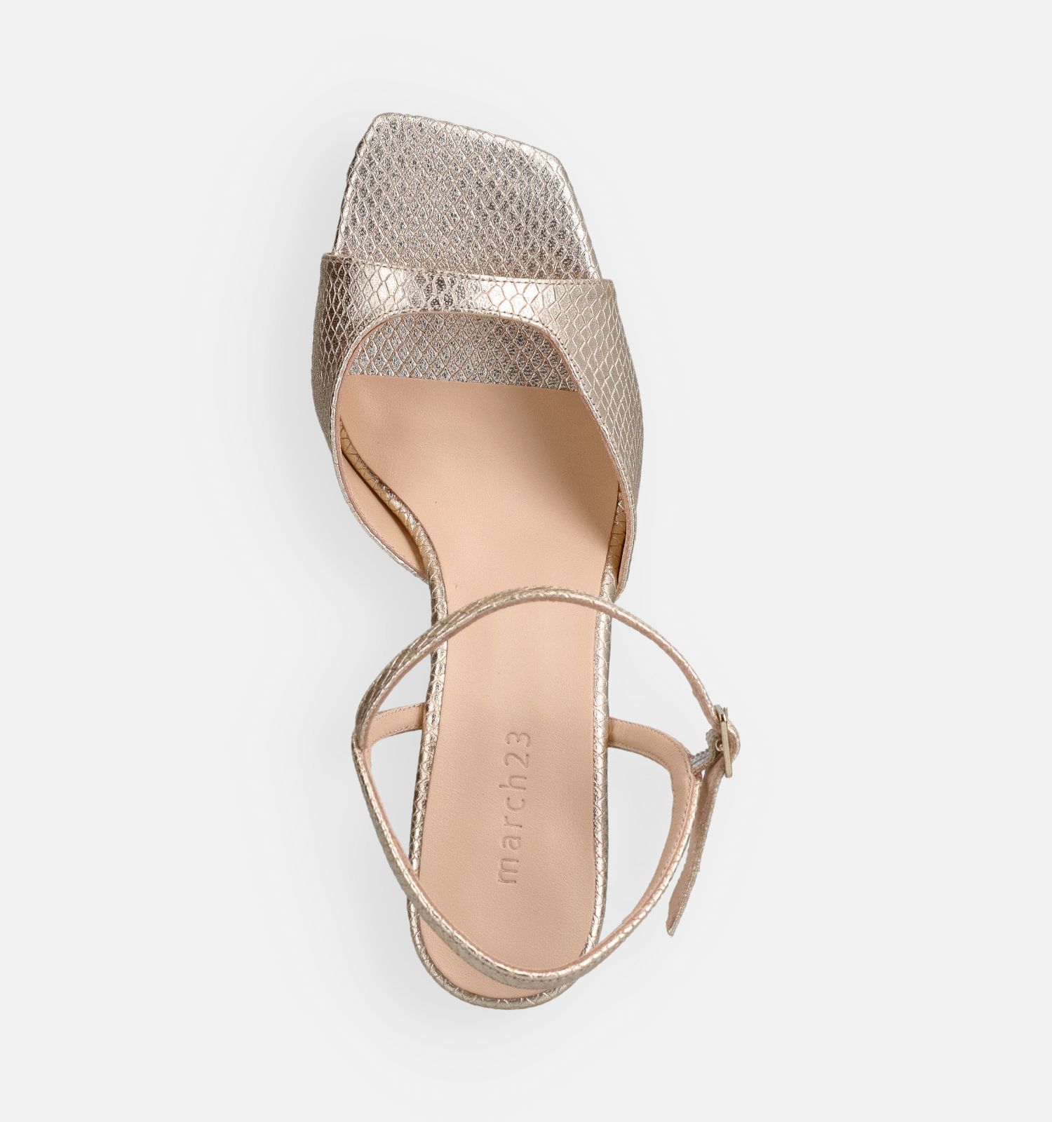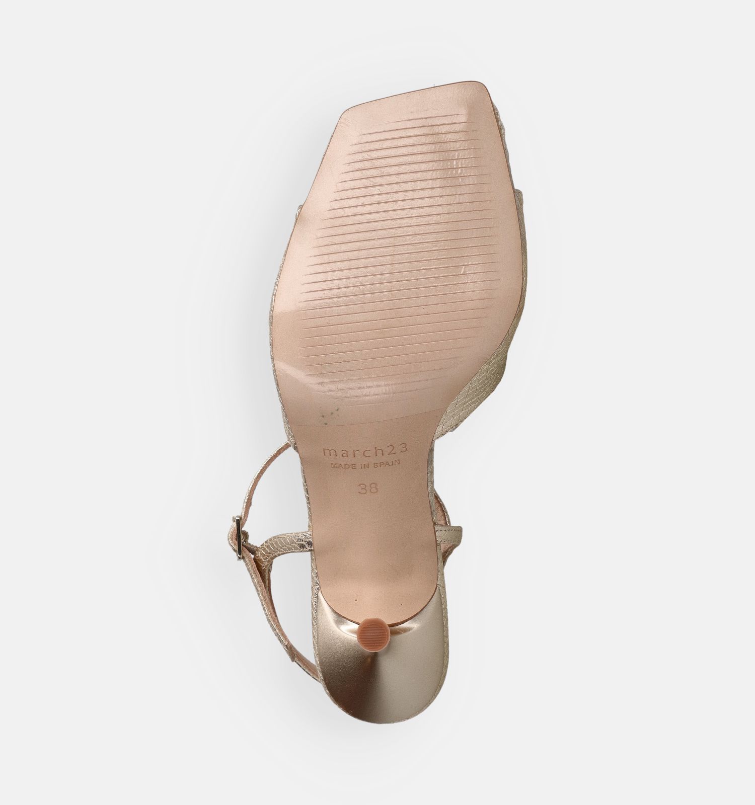 Le matériau extérieur de ces sandales tendance à talons est de qualité cuir, avec des semelles intérieures douces en cuir. Cela contribue certainement au confort de marche de ces sandalettes March23. Grâce à la fermeture (boucle), ces sandales à talons en or de March23 restent bien en place pendant la marche (et même en dansant).