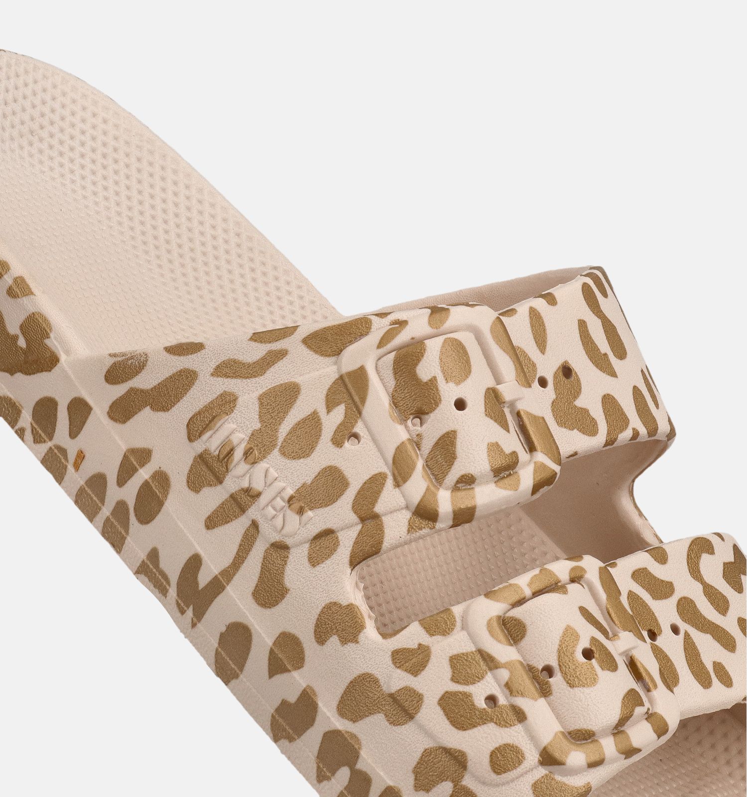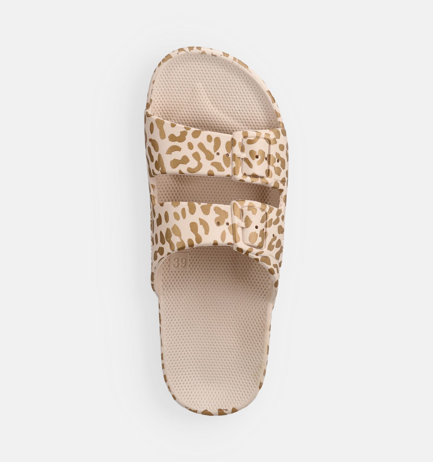 Ces claquettes or pour femmes ont des semelles en plastique. Elles sont donc très faciles d'entretien et hygiéniques. Ces nu-pieds de Freedom Moses sont faciles à nettoyer à l'eau et au savon doux. Bon à savoir également : ce modèle femmes en or sèche rapidement.