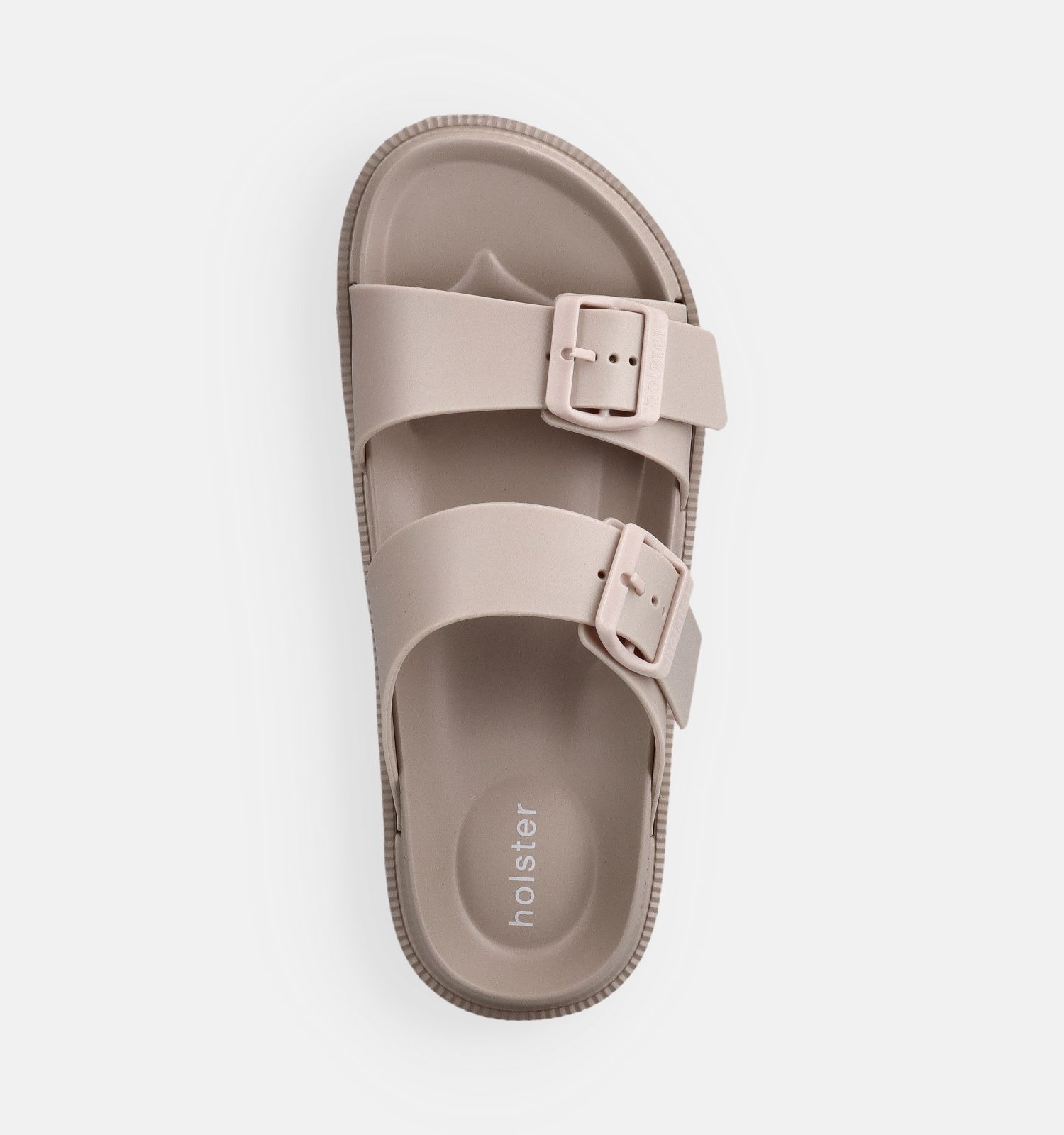 Les claquettes de Holster Australia sont une valeur ajoutée à toute collection de chaussures de femmes ! Les claquettes sont confortables et polyvalentes. Les claquettes comme ce modèle en beige de Holster Australia ne sont plus réservées à la plage depuis longtemps.