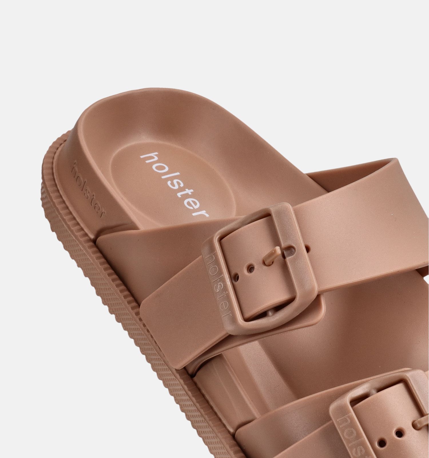 Ces claquettes marron pour femmes ont des semelles en plastique. Elles sont donc très faciles d'entretien et hygiéniques. Ces nu-pieds de Holster Australia sont faciles à nettoyer à l'eau et au savon doux. Bon à savoir également : ce modèle femmes en marron sèche rapidement.