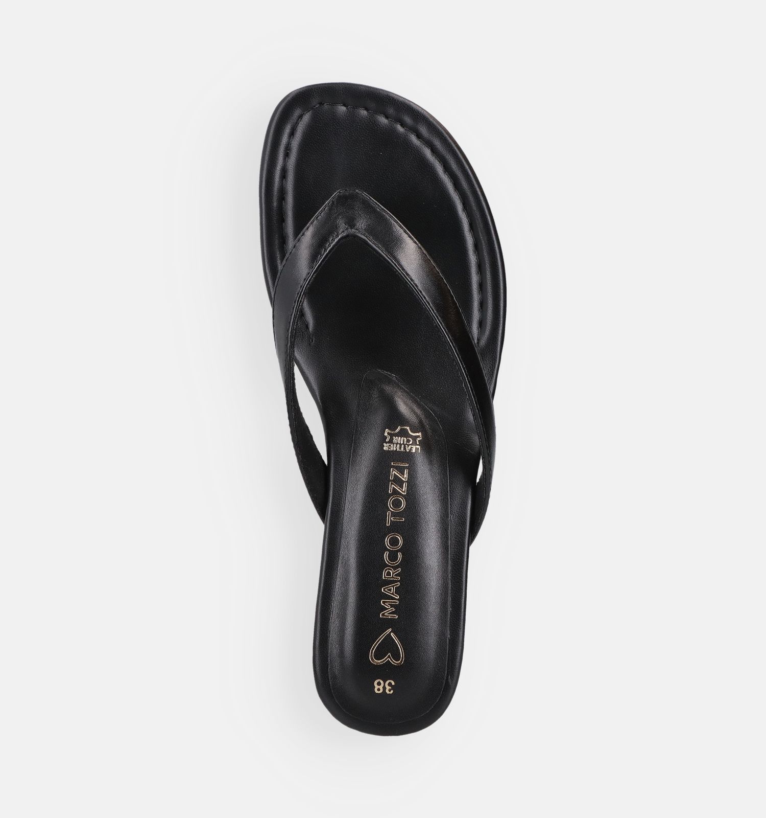 Cette sandale légère en noir cuir offre une coupe agréable, adaptée à une largeur de pied F - Semelle normale. La semelle intérieure de qualité signée Marco Tozzi, en cuir, est douce au toucher. Parfait pour les journées où les températures grimpent ! Avec ces sandales en noir, vous aurez l'impression de marcher sur un nuage toute la journée.