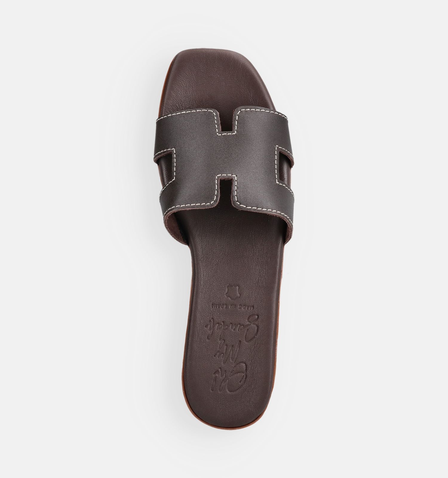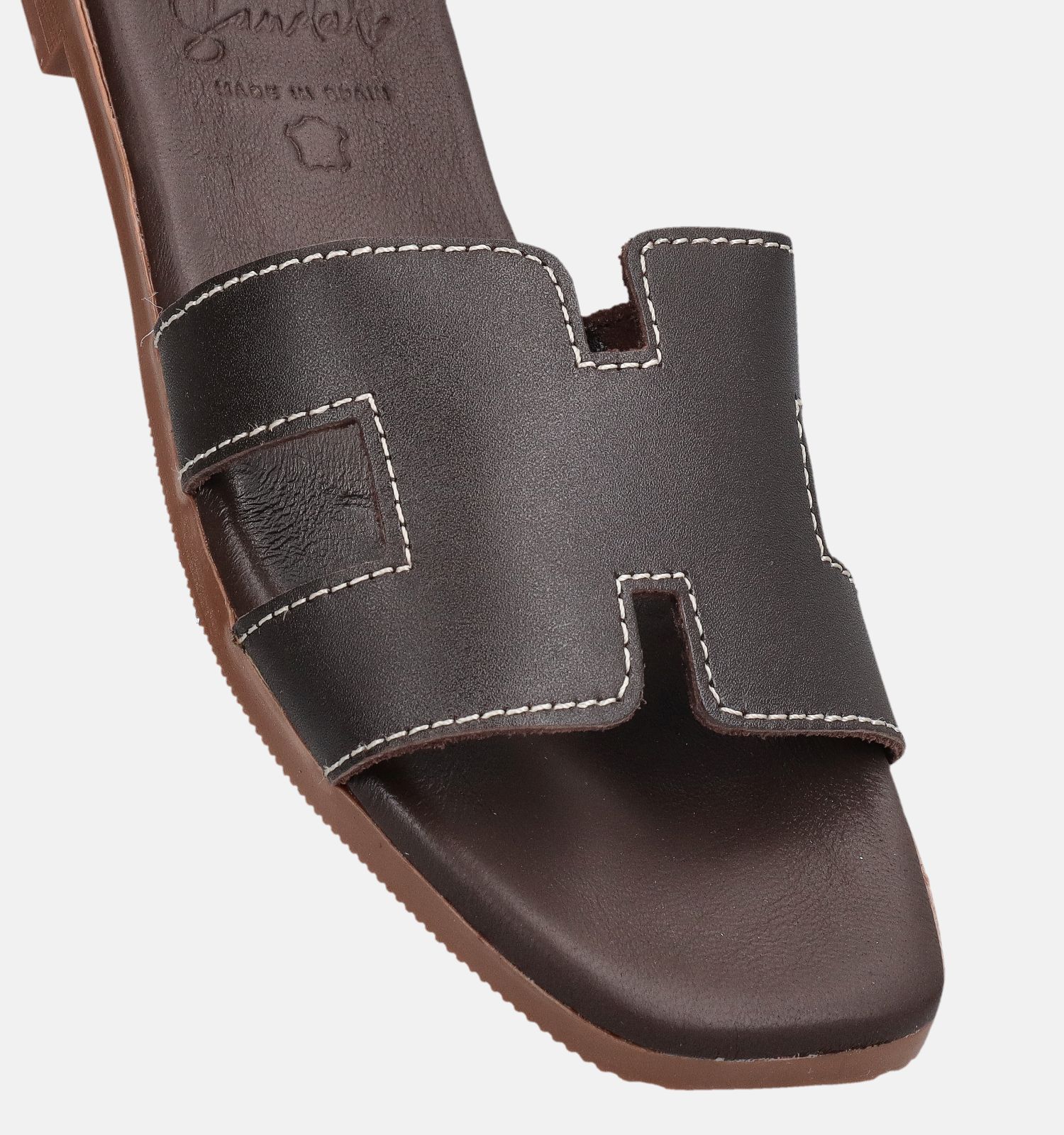 Ces mules plates de Oh My Sandals sont fabriquées en cuir de qualité et doublées en cuir. Ces matériaux ultra légers sont doux et agréables au contact de la peau. Ce modèle en marron convient aux largeurs de pied F - Semelle normale. Vous savez que la largeur et la pointure vous conviennent si vos talons et vos orteils restent bien dans le lit plantaire de ces nu-pieds Oh My Sandals. La bride de ces nu-pieds en marron doit tenir fermement votre pied, sans jamais être trop serrée.
