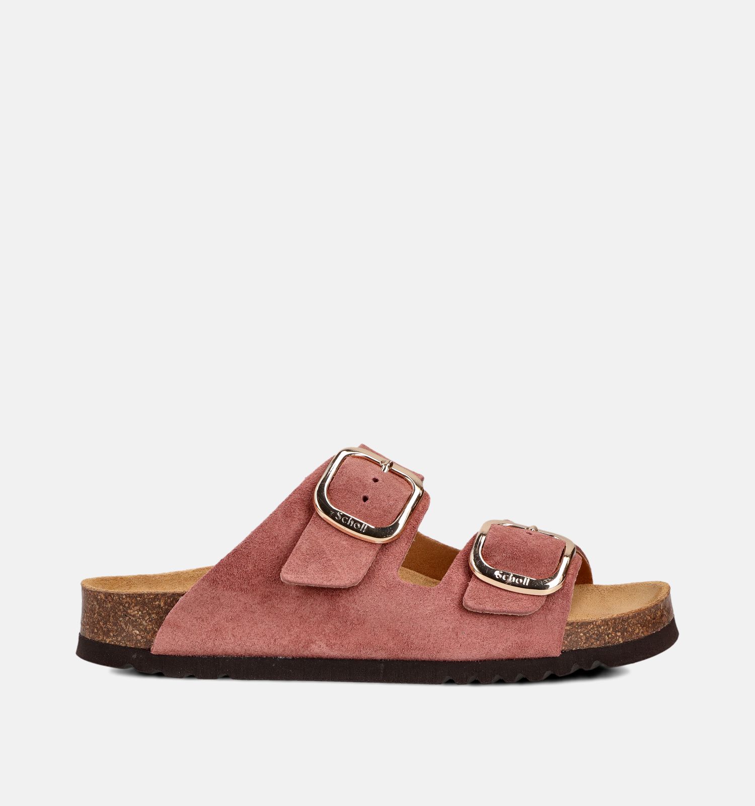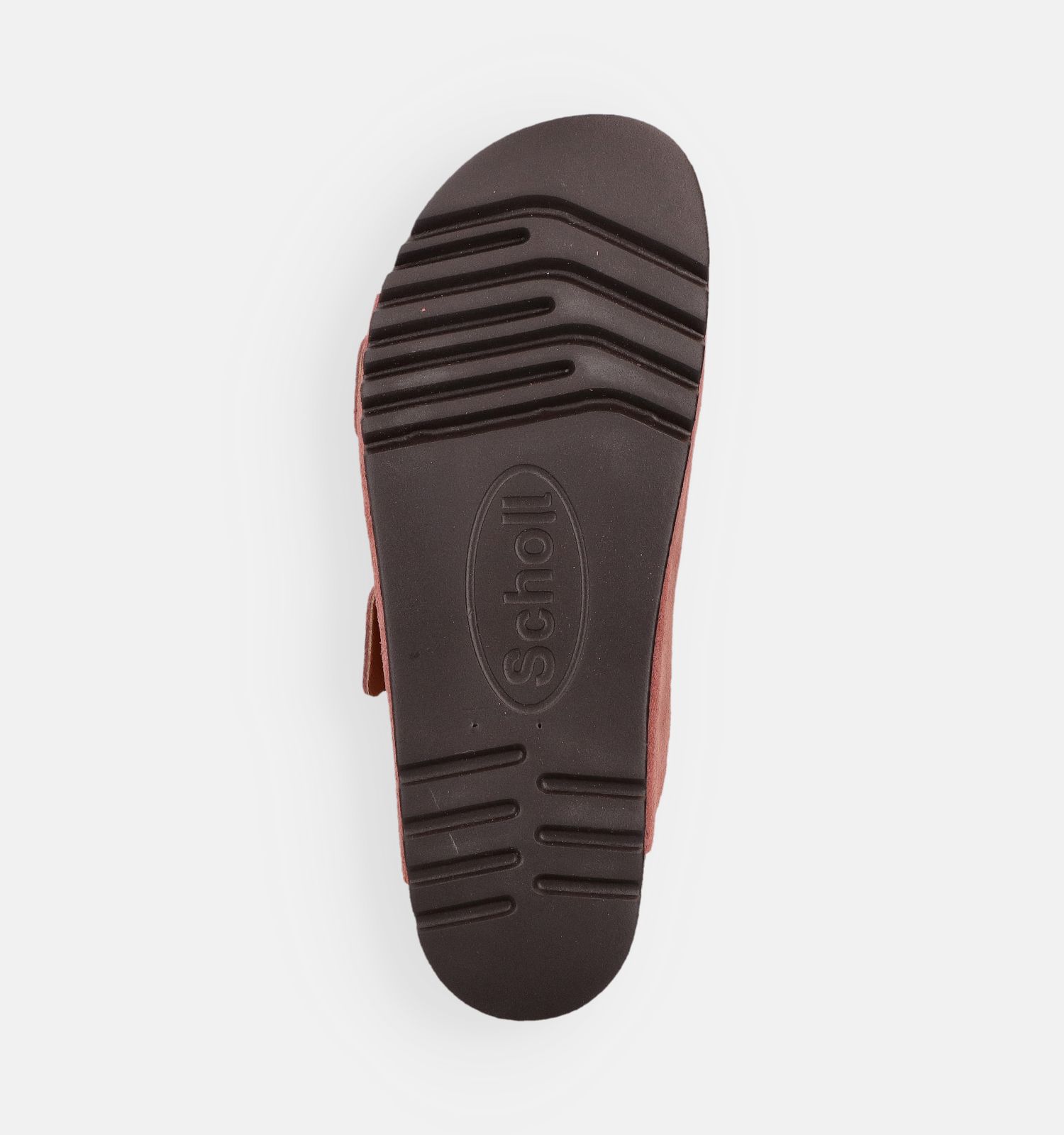 Ces mules plates de Scholl sont fabriquées en daim de qualité et doublées en simili cuir. Ces matériaux ultra légers sont doux et agréables au contact de la peau. Ce modèle en rouge convient aux largeurs de pied F - Semelle normale. Vous savez que la largeur et la pointure vous conviennent si vos talons et vos orteils restent bien dans le lit plantaire de ces nu-pieds Scholl. La bride de ces nu-pieds en rouge doit tenir fermement votre pied, sans jamais être trop serrée.