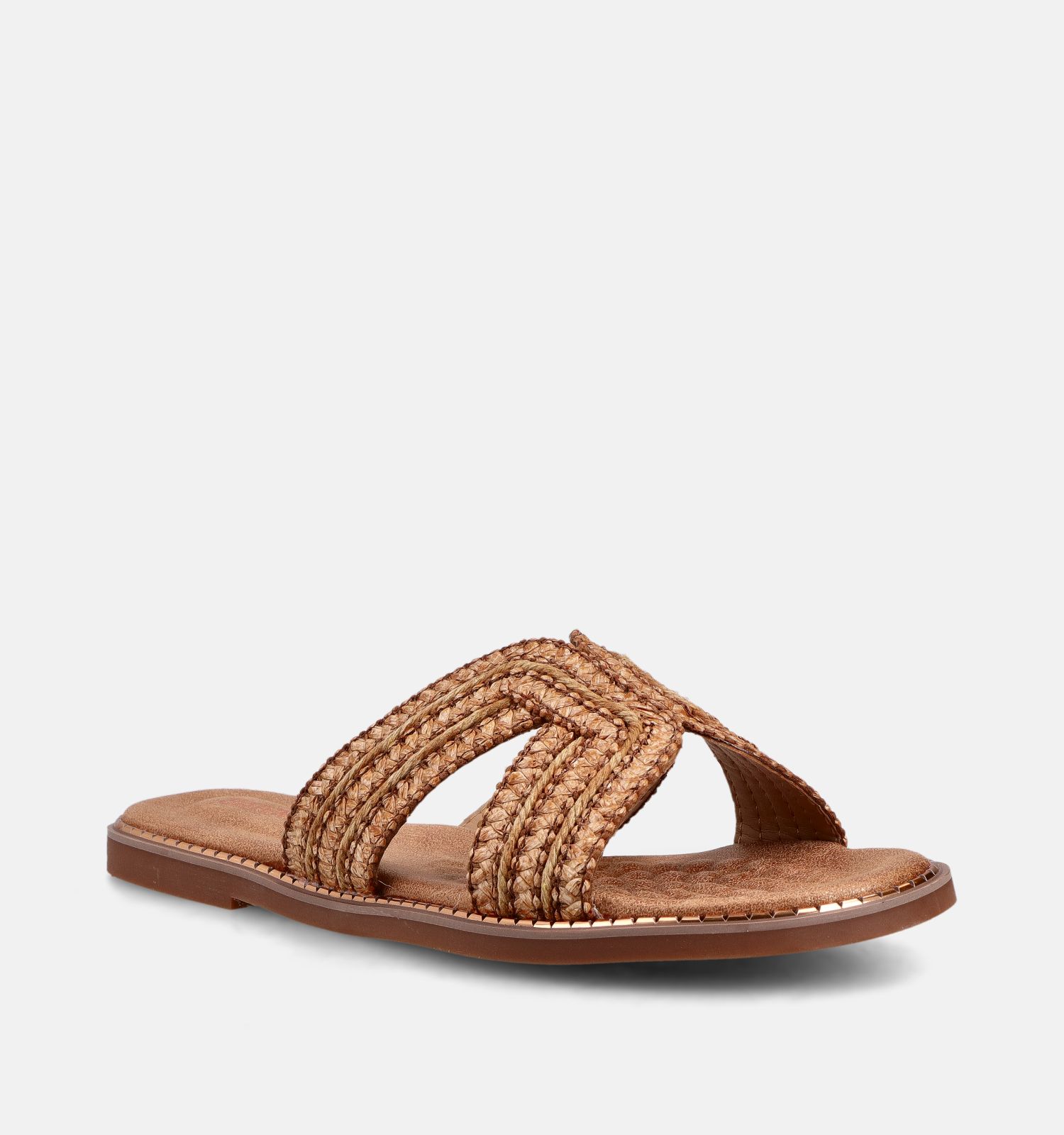 Ces mules plates de Signatur sont fabriquées en raphia, textile de qualité et doublées en textile. Ces matériaux ultra légers sont doux et agréables au contact de la peau. Ce modèle en cognac convient aux largeurs de pied F - Semelle normale. Vous savez que la largeur et la pointure vous conviennent si vos talons et vos orteils restent bien dans le lit plantaire de ces nu-pieds Signatur. La bride de ces nu-pieds en cognac doit tenir fermement votre pied, sans jamais être trop serrée.
