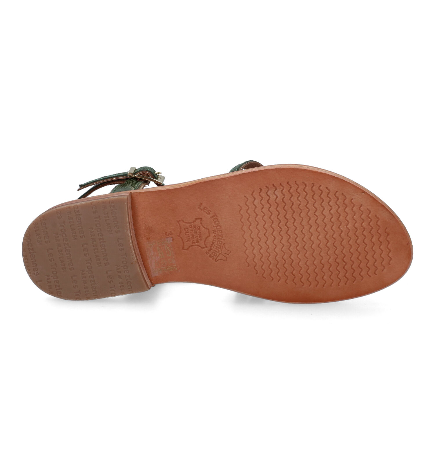 Cette sandale plate signée Les Tropeziennes est fabriquée en cuir et doublée cuir à l’intérieur.
