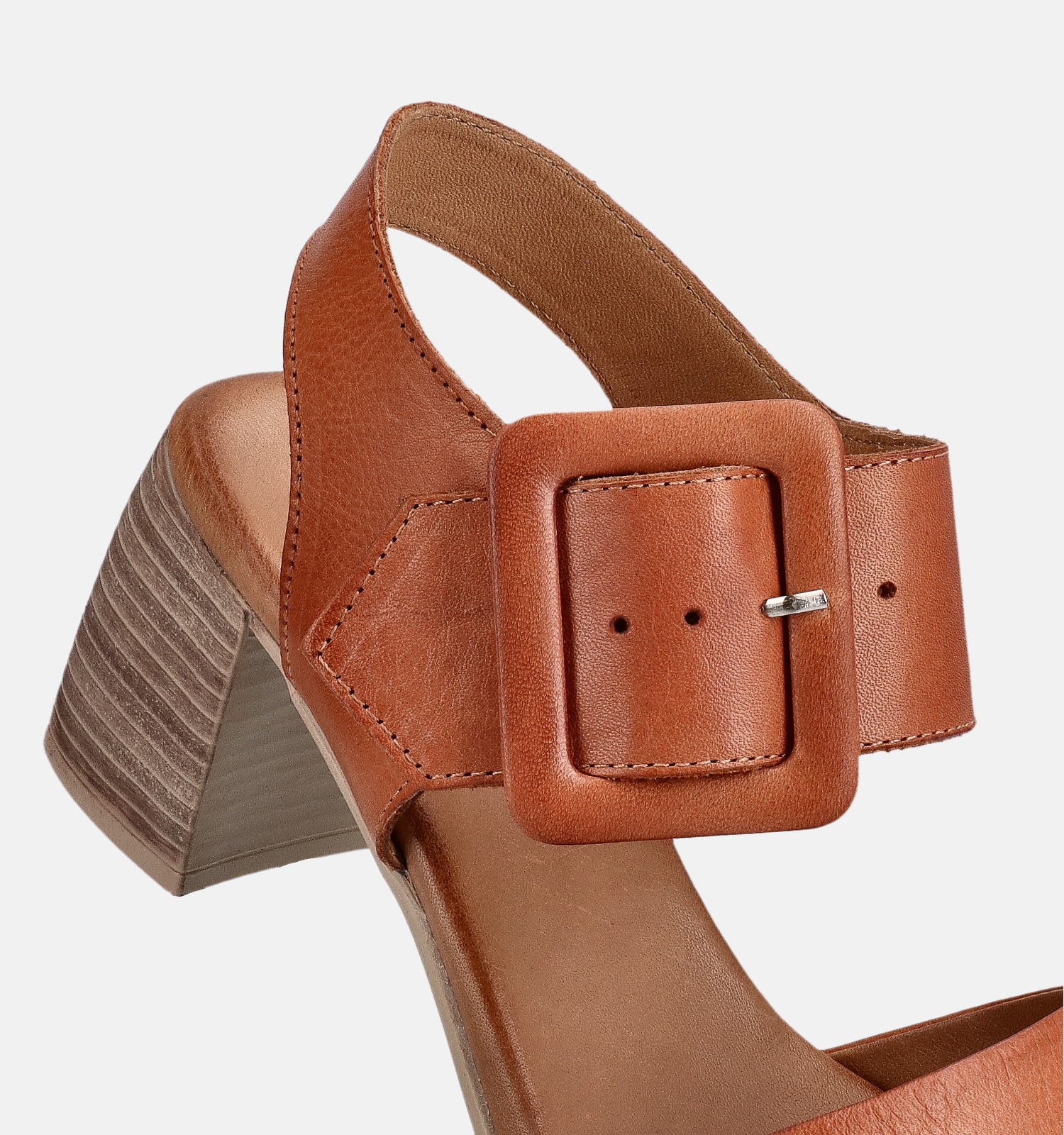 Le matériau extérieur de ces sandales tendance à talons est de qualité cuir, avec des semelles intérieures douces en cuir. Cela contribue certainement au confort de marche de ces sandalettes Hush Puppies. Grâce à la fermeture (boucle), ces sandales à talons en cognac de Hush Puppies restent bien en place pendant la marche (et même en dansant).