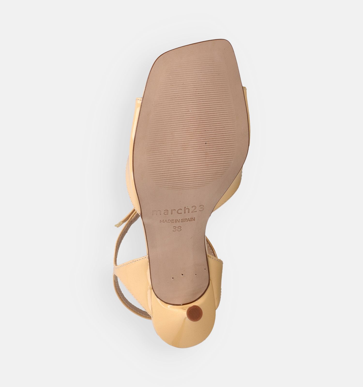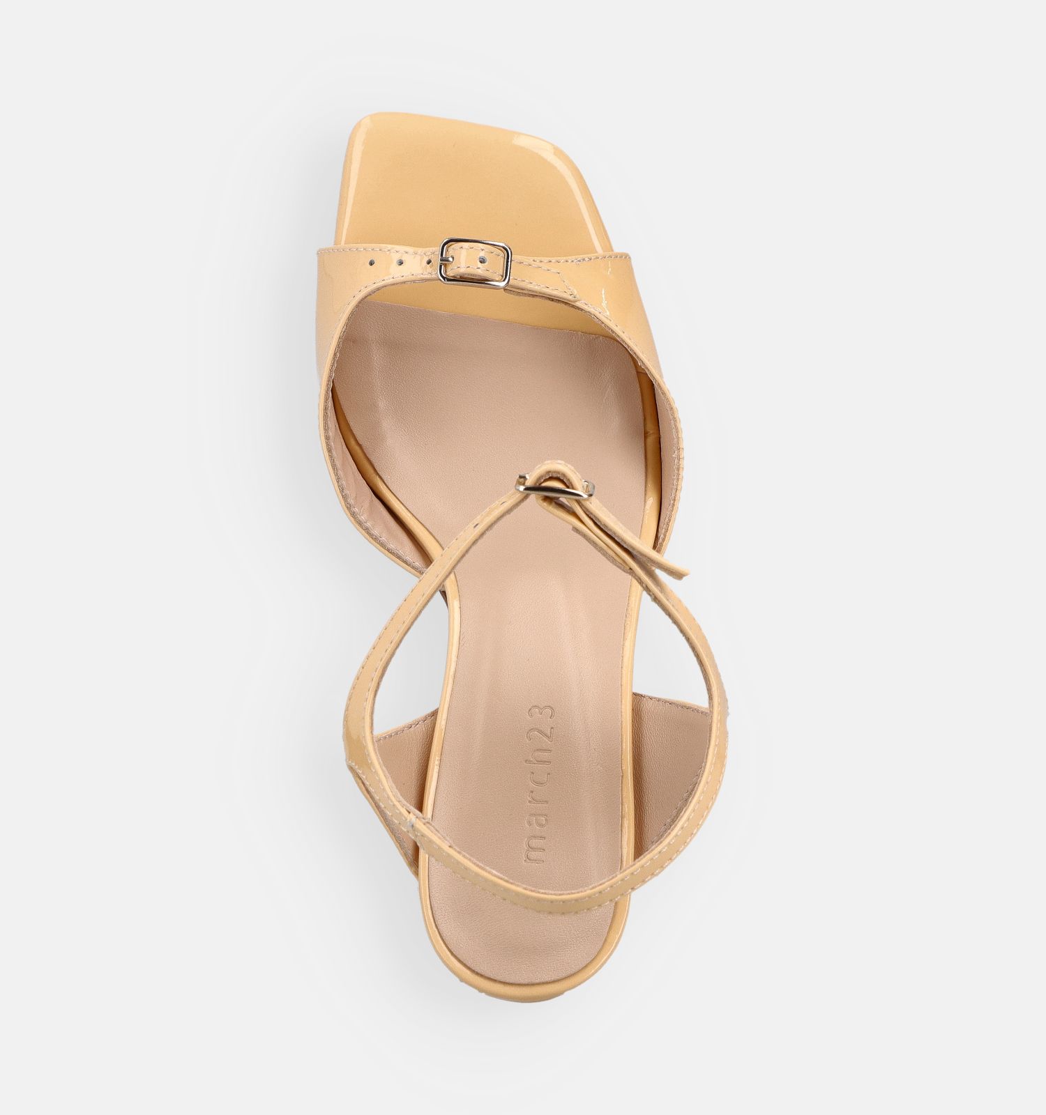 Le matériau extérieur de ces sandales tendance à talons est de qualité verni, avec des semelles intérieures douces en cuir. Cela contribue certainement au confort de marche de ces sandalettes March23. Grâce à la fermeture (boucle), ces sandales à talons en jaune de March23 restent bien en place pendant la marche (et même en dansant).