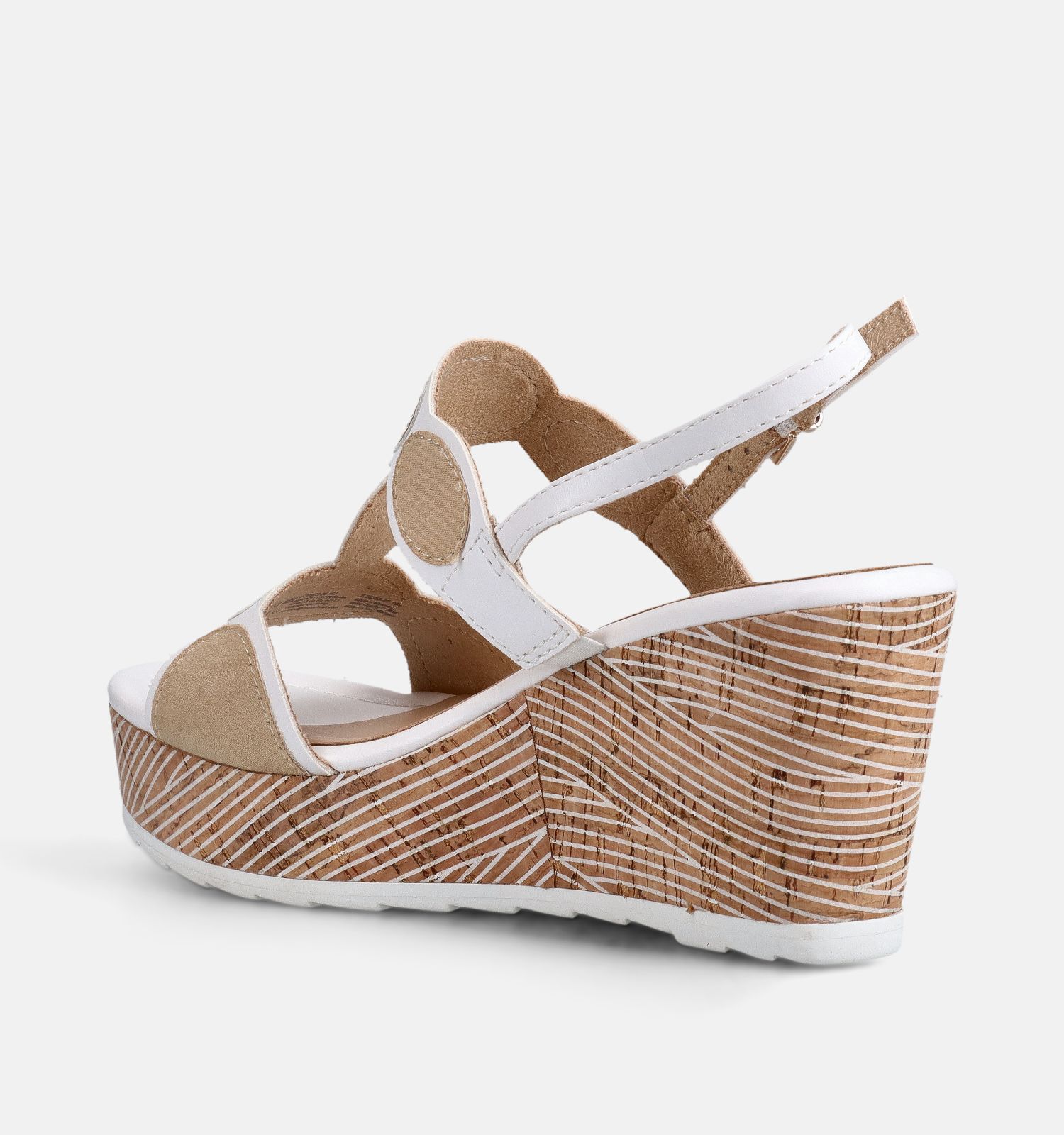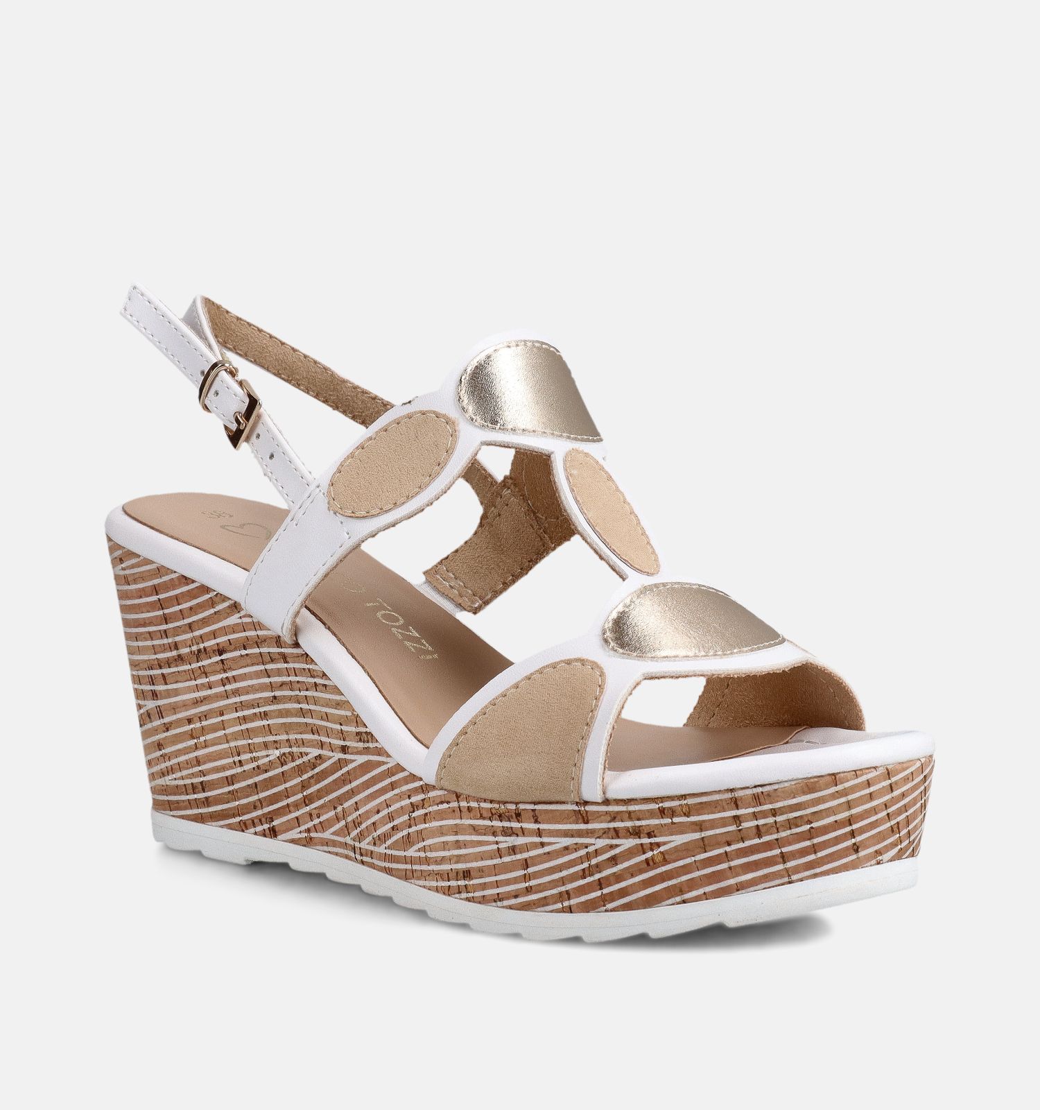Ces sandales compensées en blanc de Marco Tozzi sont l’accord parfait avec toutes vos tenues estivales ! Ce modèle tendance est un véritable must-have cette saison. Les sandales compensées font leur grand retour sur les podiums iconiques de Milan, New York et Paris. Elles sont de nouveau ultra-tendance — on adore !