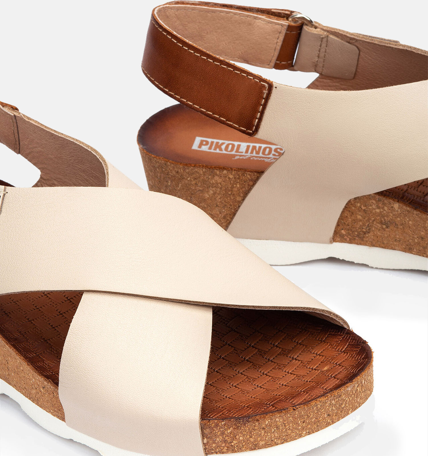 Ces sandales compensées sont fabriquées en cuir de qualité, avec des semelles intérieures douces en cuir, liège. Cela contribue sans aucun doute au confort de marche exceptionnel des sandales Pikolinos. Ces sandales compensées en blanc ont une largeur de chaussure de F - Semelle normale. Bon à savoir également : ce modèle possède une forme ergonomique, offrant un confort de marche sublime tout au long de la journée. Ces sandales Pikolinos en blanc trouveront sans aucun doute une place permanente dans votre cœur et votre collection de chaussures !
