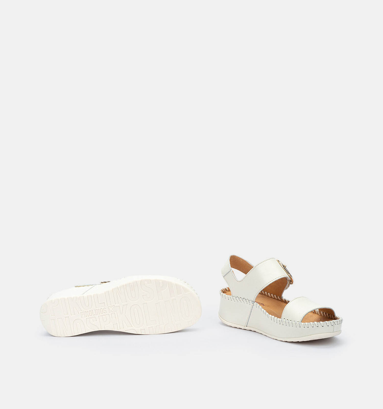Ces sandales compensées sont fabriquées en cuir de qualité, avec des semelles intérieures douces en cuir. Cela contribue sans aucun doute au confort de marche exceptionnel des sandales Pikolinos. Ces sandales compensées en blanc ont une largeur de chaussure de F - Semelle normale. Bon à savoir également : ce modèle possède une forme ergonomique, offrant un confort de marche sublime tout au long de la journée. Ces sandales Pikolinos en blanc trouveront sans aucun doute une place permanente dans votre cœur et votre collection de chaussures !