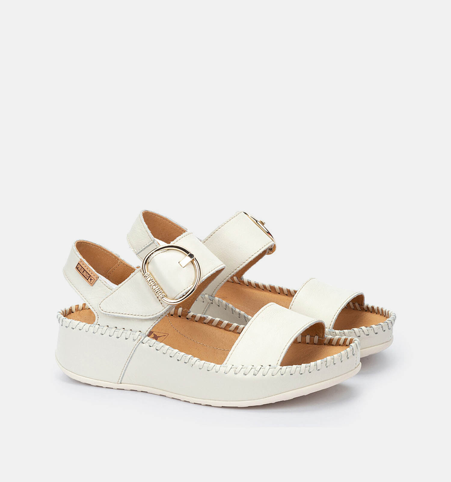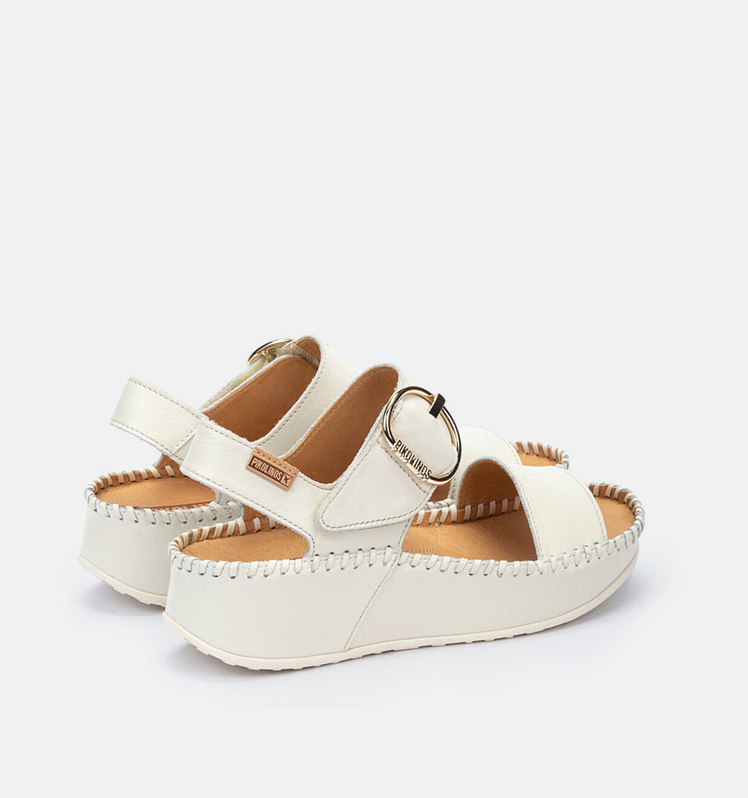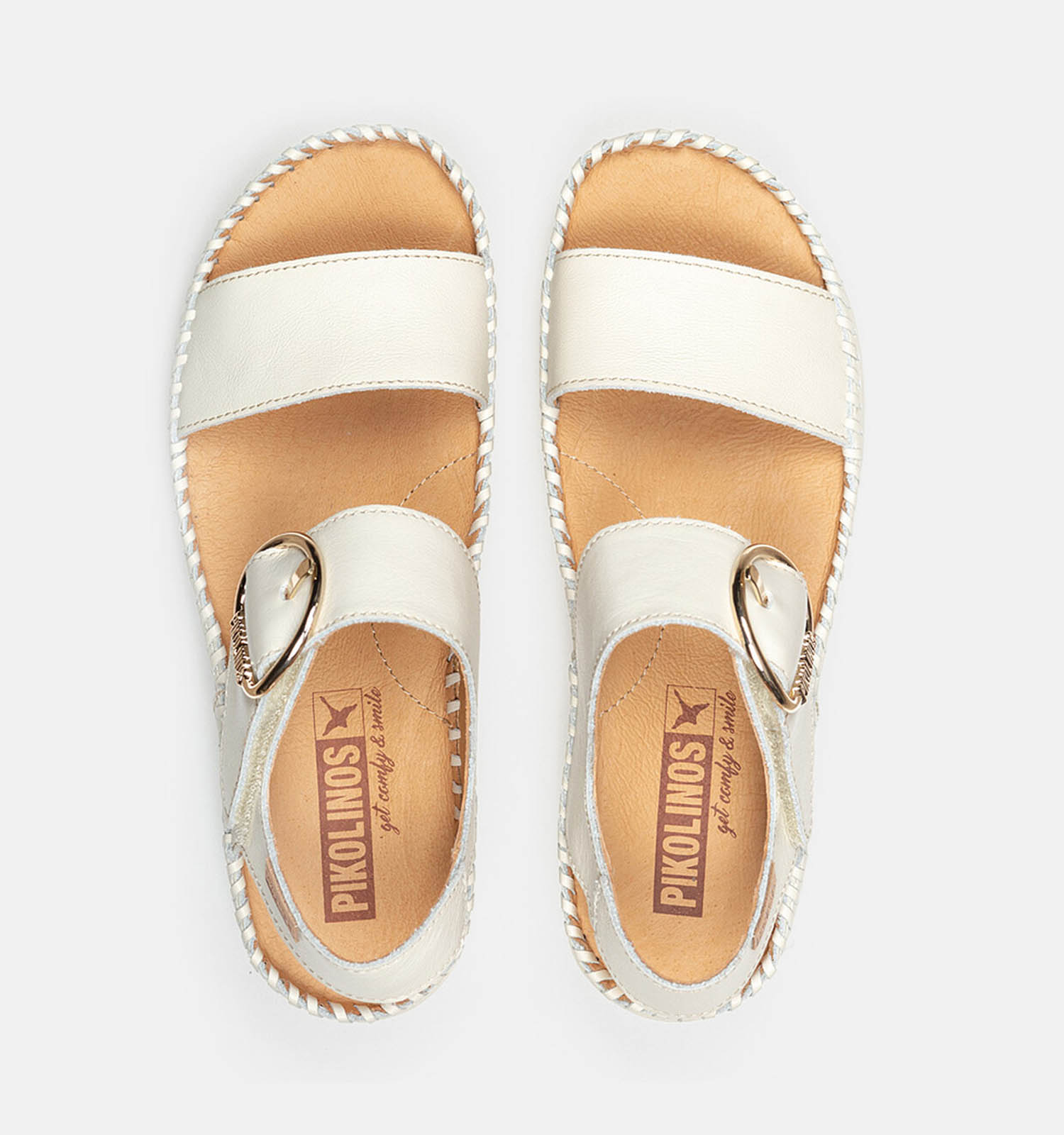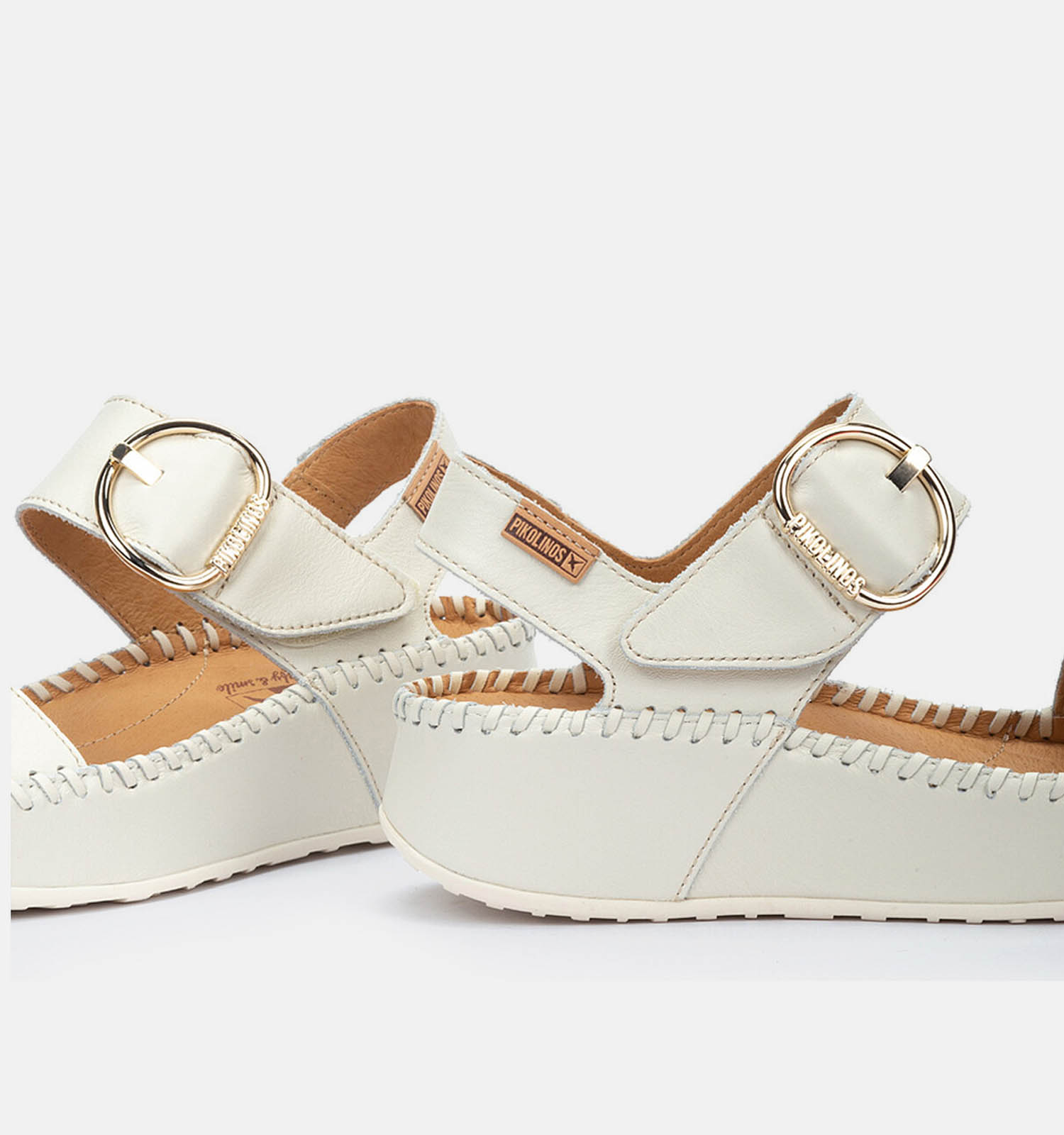 Ces sandales compensées de Pikolinos possèdent un talon compensé subtil qui allonge visuellement la silhouette, sans compromettre le confort. Et ça, on adore ! Ces sandales compensées en blanc sont donc les chaussures estivales idéales. Ce modèle Pikolinos est tendance, confortable et, grâce à sa belle couleur, s’associe facilement avec toutes les tenues de votre garde-robe !
