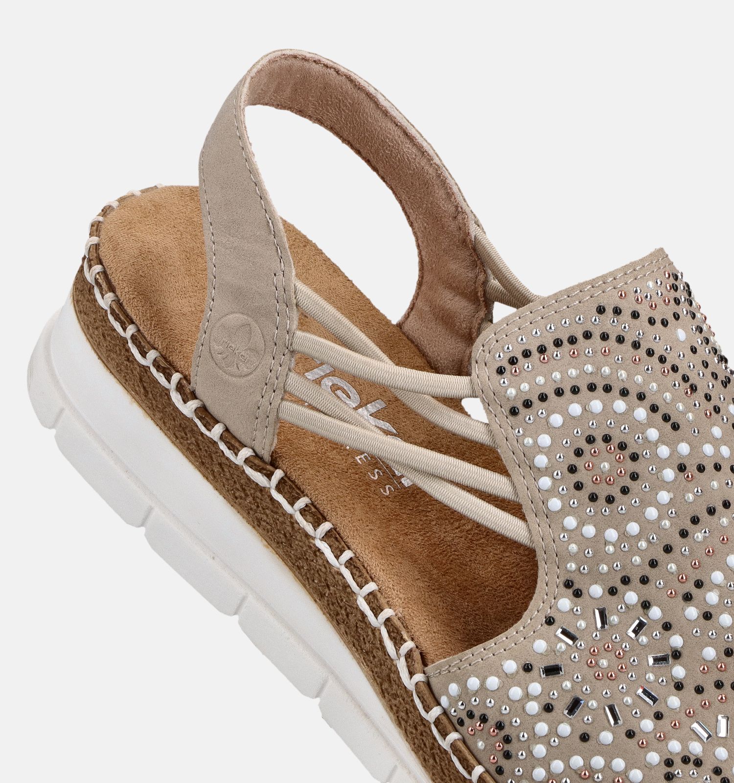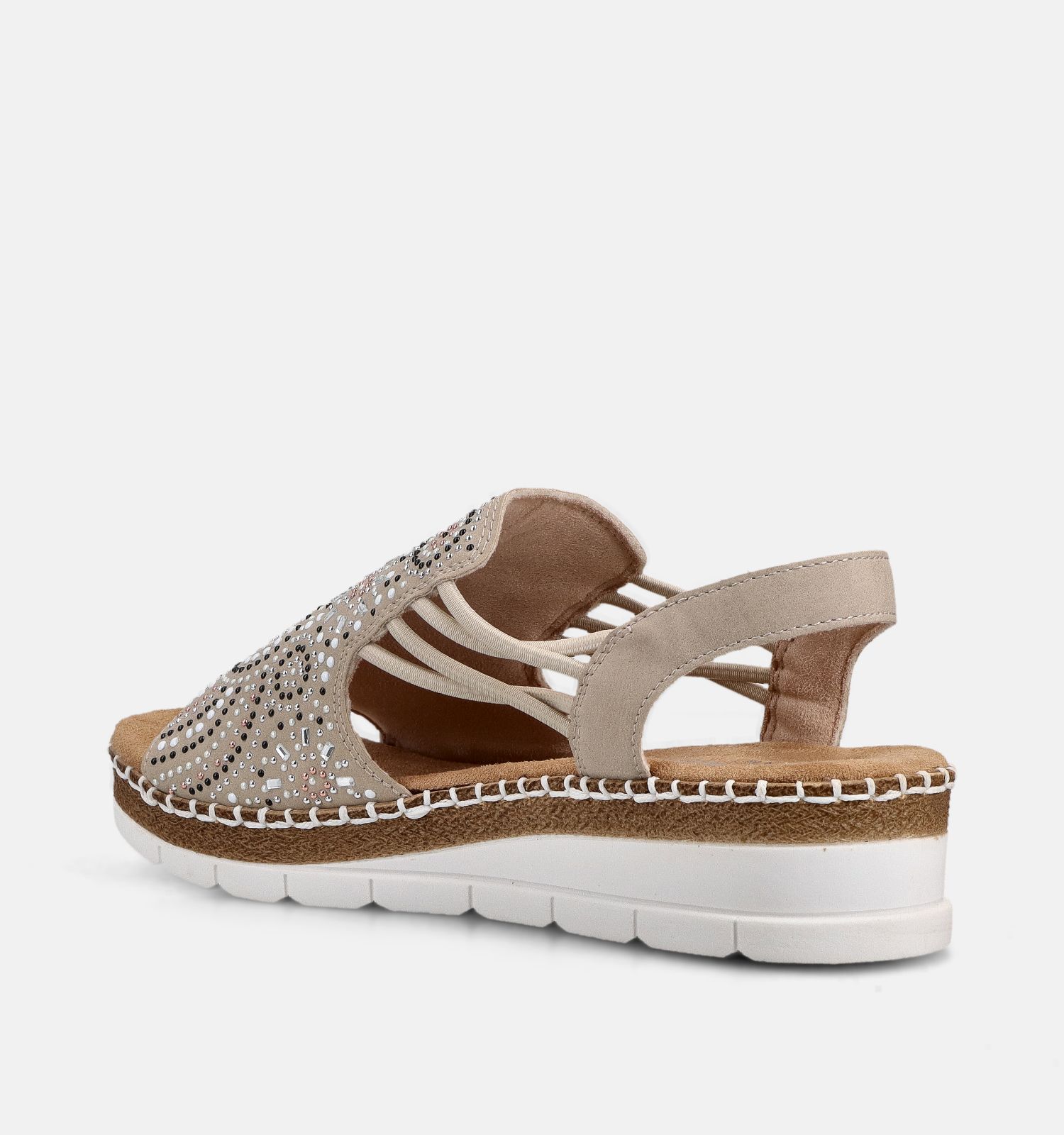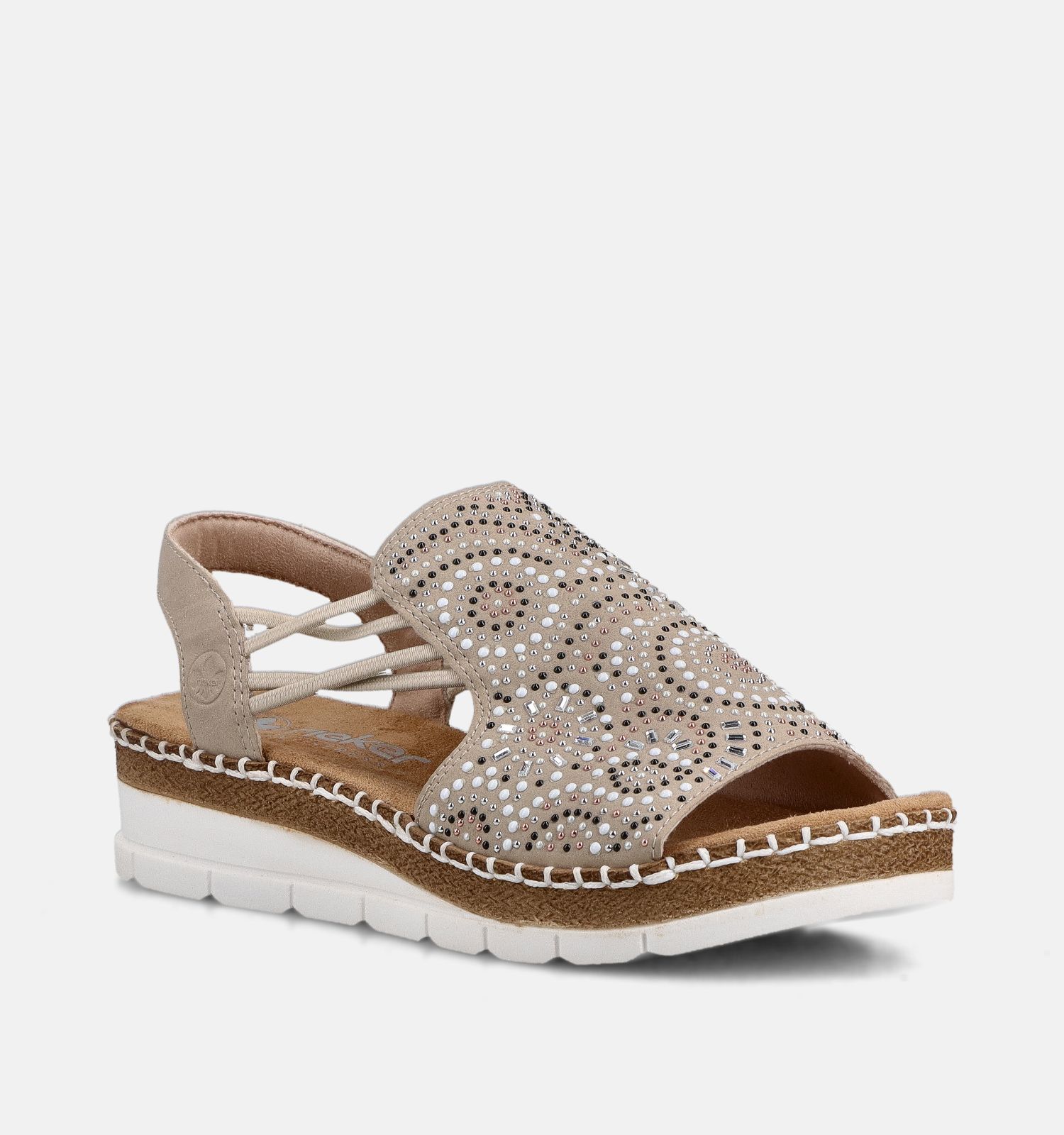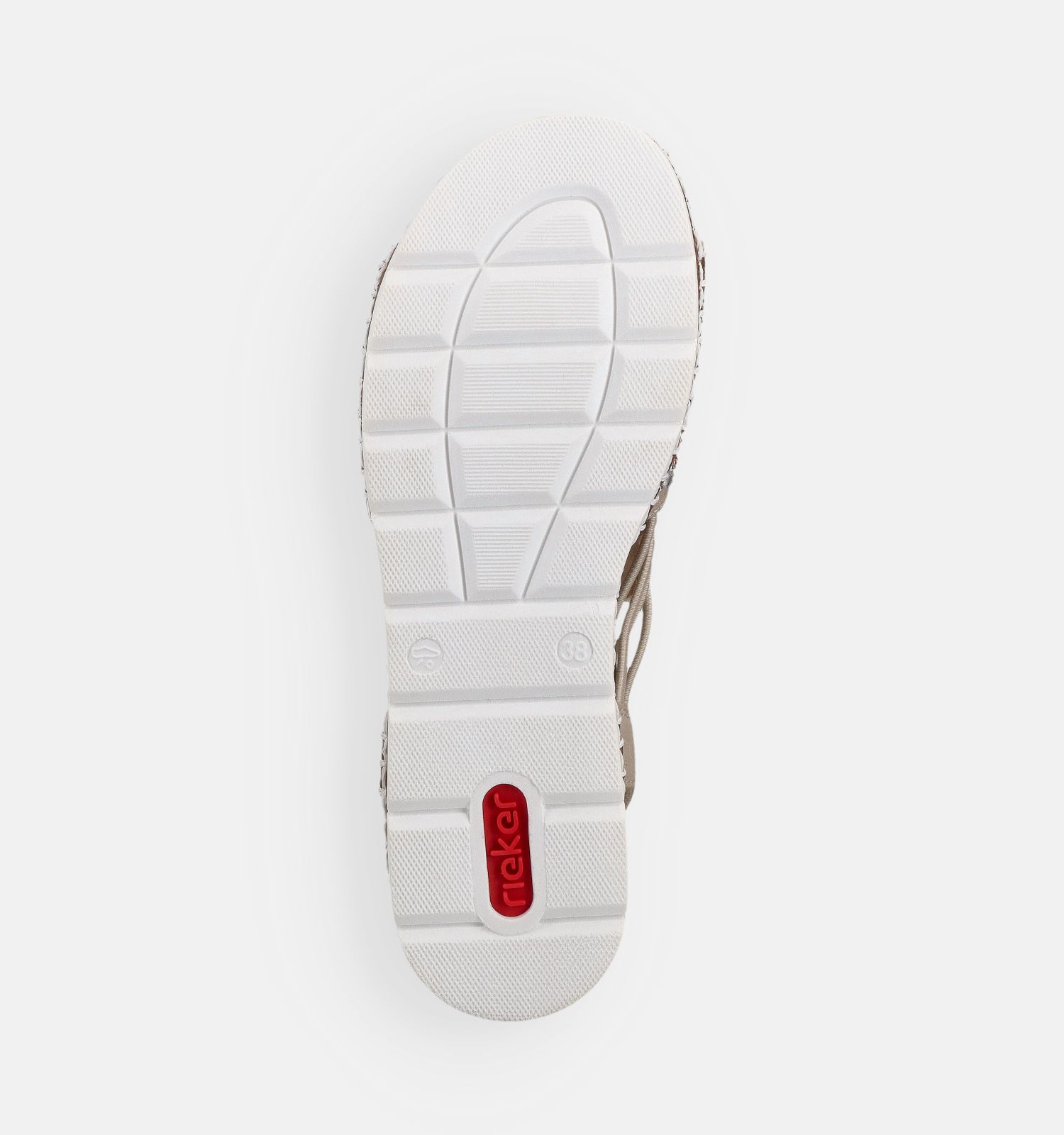 Ces sandales compensées de Rieker possèdent un talon compensé subtil qui allonge visuellement la silhouette, sans compromettre le confort. Et ça, on adore ! Ces sandales compensées en beige sont donc les chaussures estivales idéales. Ce modèle Rieker est tendance, confortable et, grâce à sa belle couleur, s’associe facilement avec toutes les tenues de votre garde-robe !