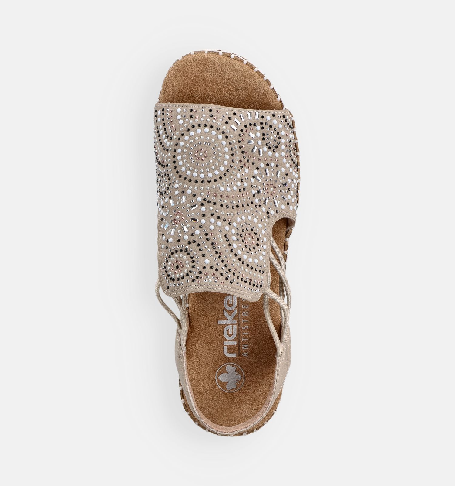 Ces sandales compensées sont fabriquées en simili cuir de qualité, avec des semelles intérieures douces en textile. Cela contribue sans aucun doute au confort de marche exceptionnel des sandales Rieker. Ces sandales compensées en beige ont une largeur de chaussure de . Bon à savoir également : ce modèle possède une forme ergonomique, offrant un confort de marche sublime tout au long de la journée. Ces sandales Rieker en beige trouveront sans aucun doute une place permanente dans votre cœur et votre collection de chaussures !