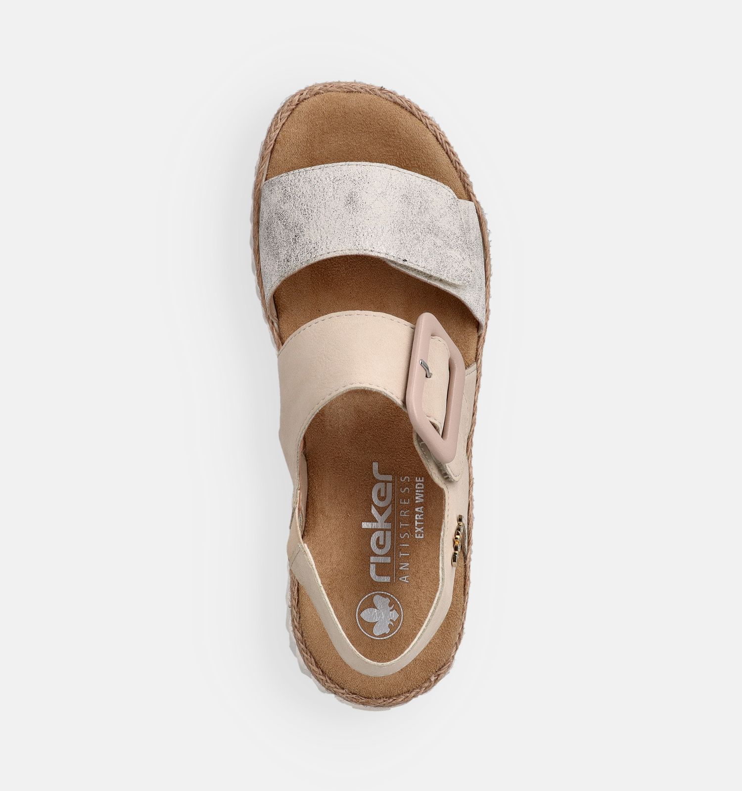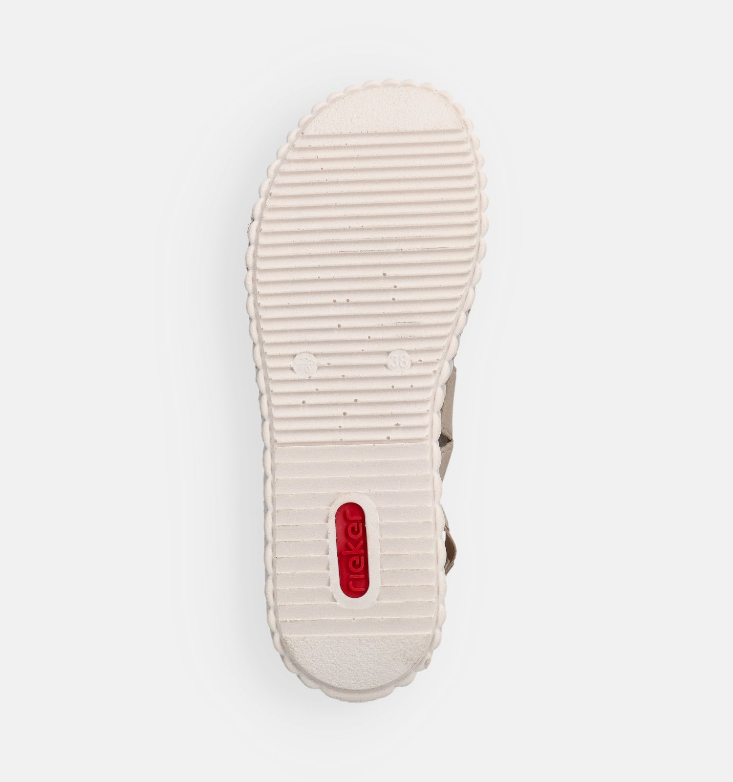 Ces sandales de chaussures Rieker pour femmes est antistress. Cela signifie que ces sandales en beige offre un confort optimal, la journée durant. Les semelles absorbeuses de chocs atténuent les chocs de la marche et répartissent la pression sur toute la semelle.