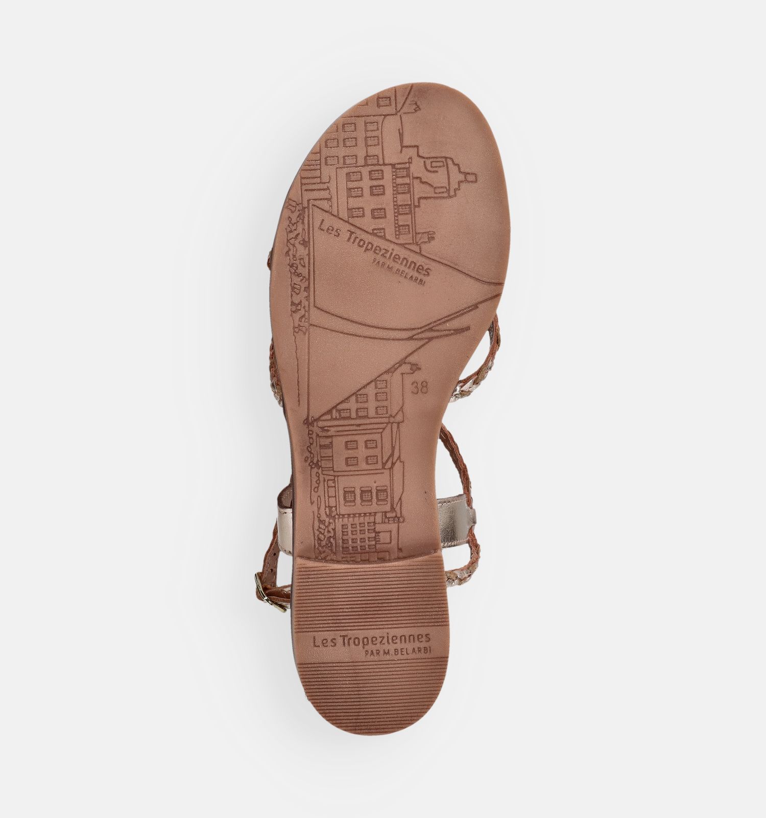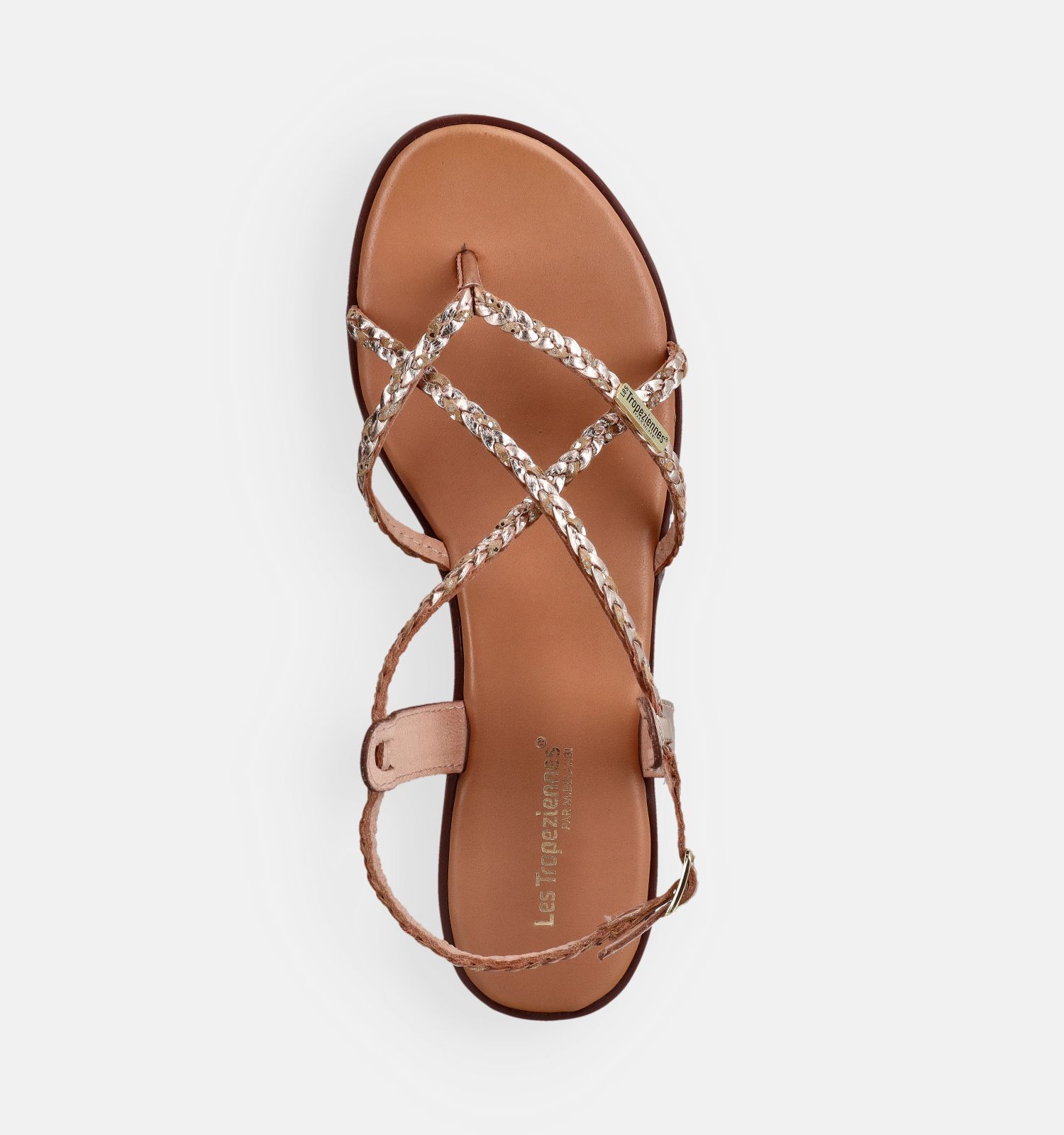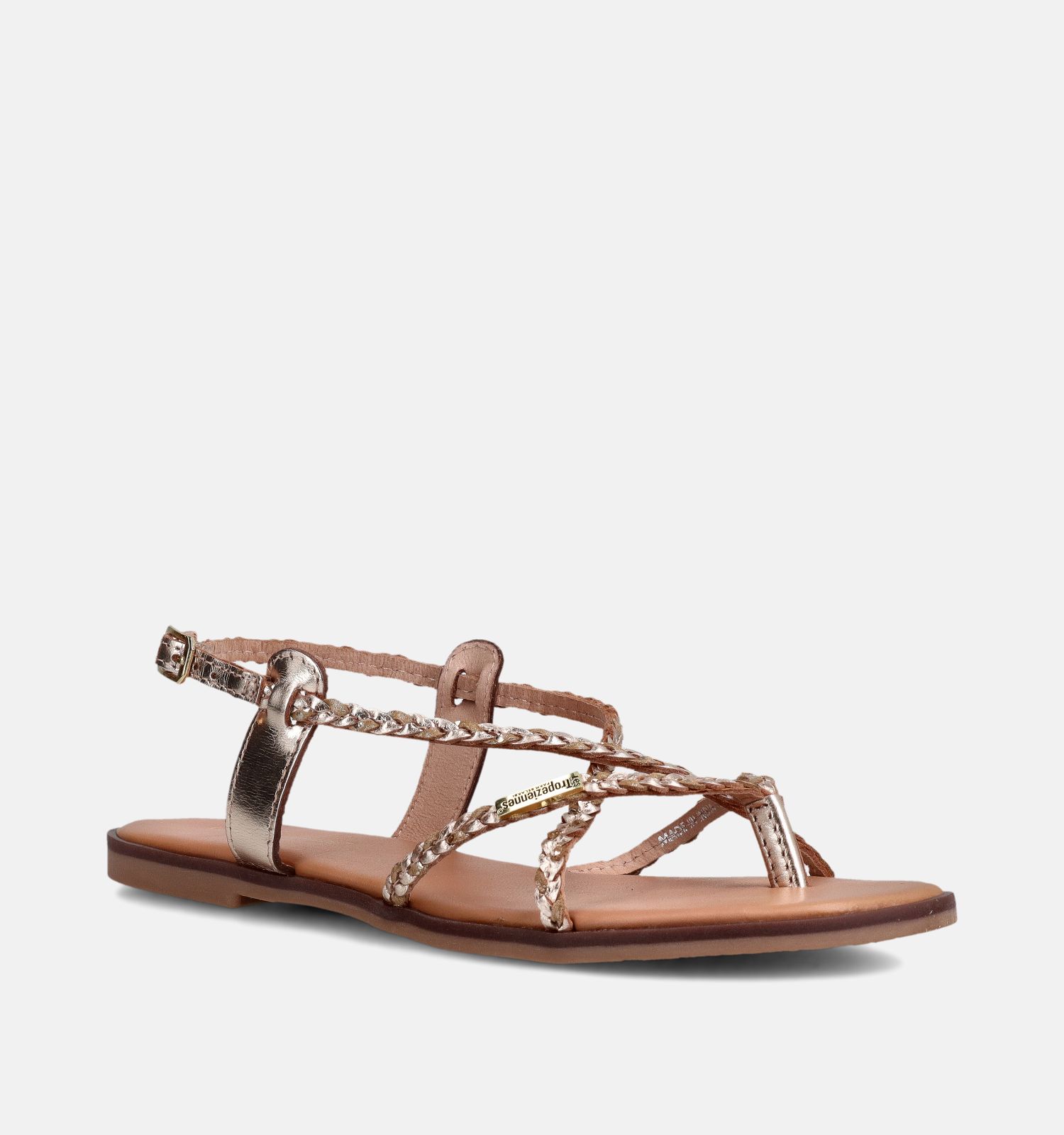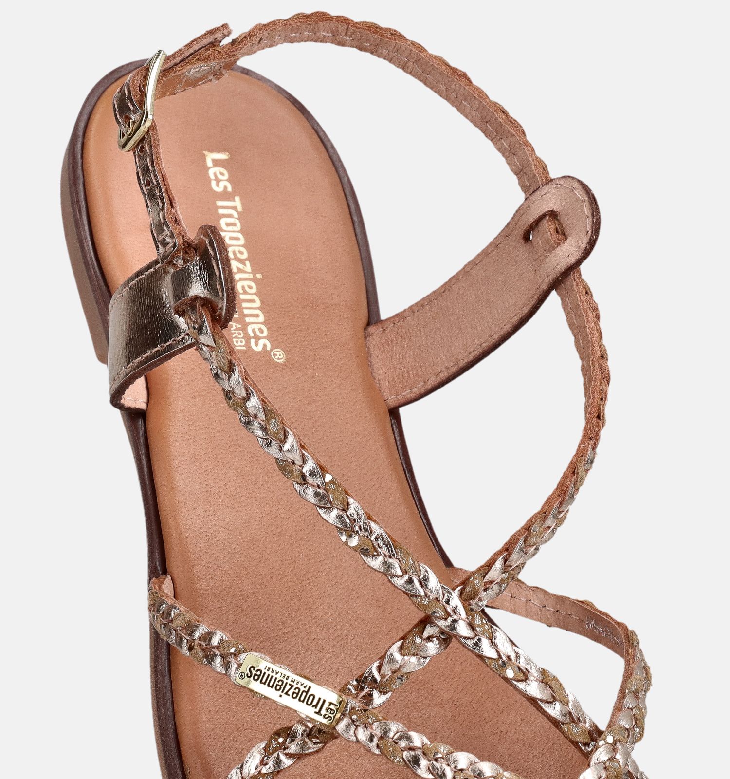 Ces sandales plates en or sont fabriquées en cuir de haute qualité. Leur matière légère aide à prévenir la fatigue des pieds — profitez pleinement de chaque instant avec Les Tropeziennes !