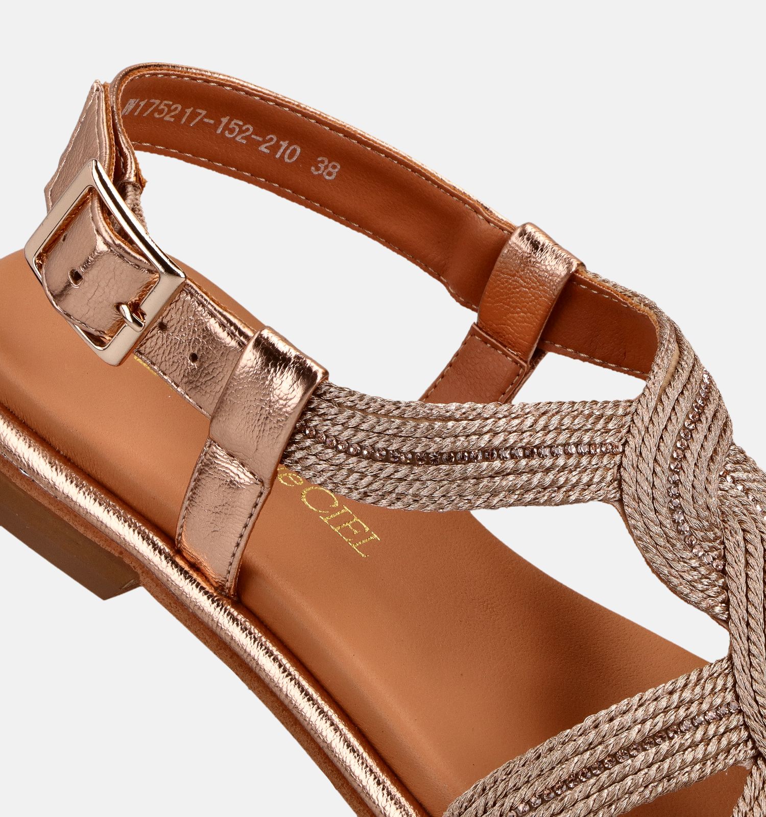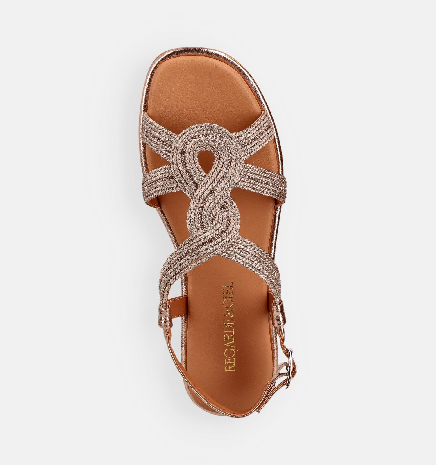Ces sandales plates en bronze sont fabriquées en simili cuir, textile de haute qualité. Leur matière légère aide à prévenir la fatigue des pieds — profitez pleinement de chaque instant avec Regarde le Ciel !