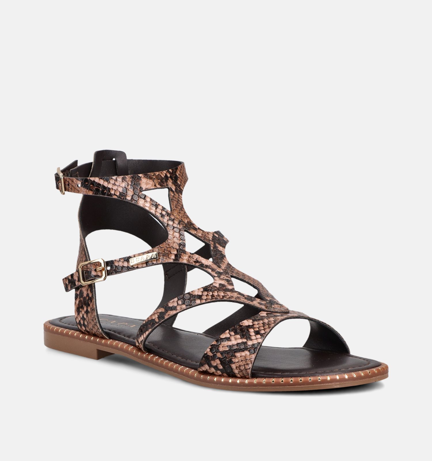 Ces sandales plates en marron sont fabriquées en simili cuir de haute qualité. Leur matière légère aide à prévenir la fatigue des pieds — profitez pleinement de chaque instant avec Scapa !